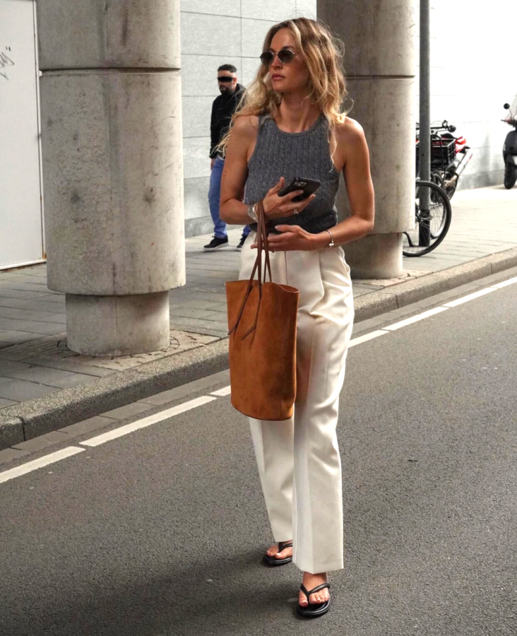 Ανδρικό παντελόνι σε ίσια γραμμή, αμάνικο τοπ ή και γιλέκο αν θέλετε τη γνώμη μας και flat σαγιονάρες που θα κάνουν τους πάντες στο γραφείο να αναρωτιούνται- άραγε έχει κανονίσει διακοπές μετά το σχόλασμα; Τα Scandi girls πάντως, λατρεύουν το συγκεκριμένο look.