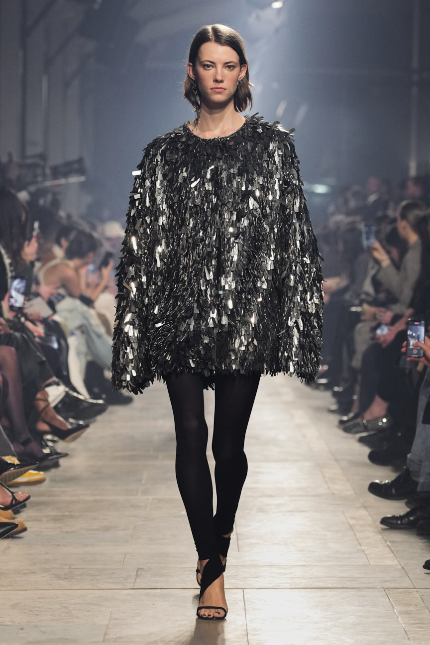 Στην Εβδομάδα Μόδας του Παρισιού, το tinsel έκανε επίσης μερικές εμφανίσεις, με τη σχεδιάστρια Isabel Marant να φτιάχνει ασημί και μαύρα πουλόβερ, σε συνδυασμό με μεταλλιζέ παντελόνια και ημιδιάφανα κολάν.