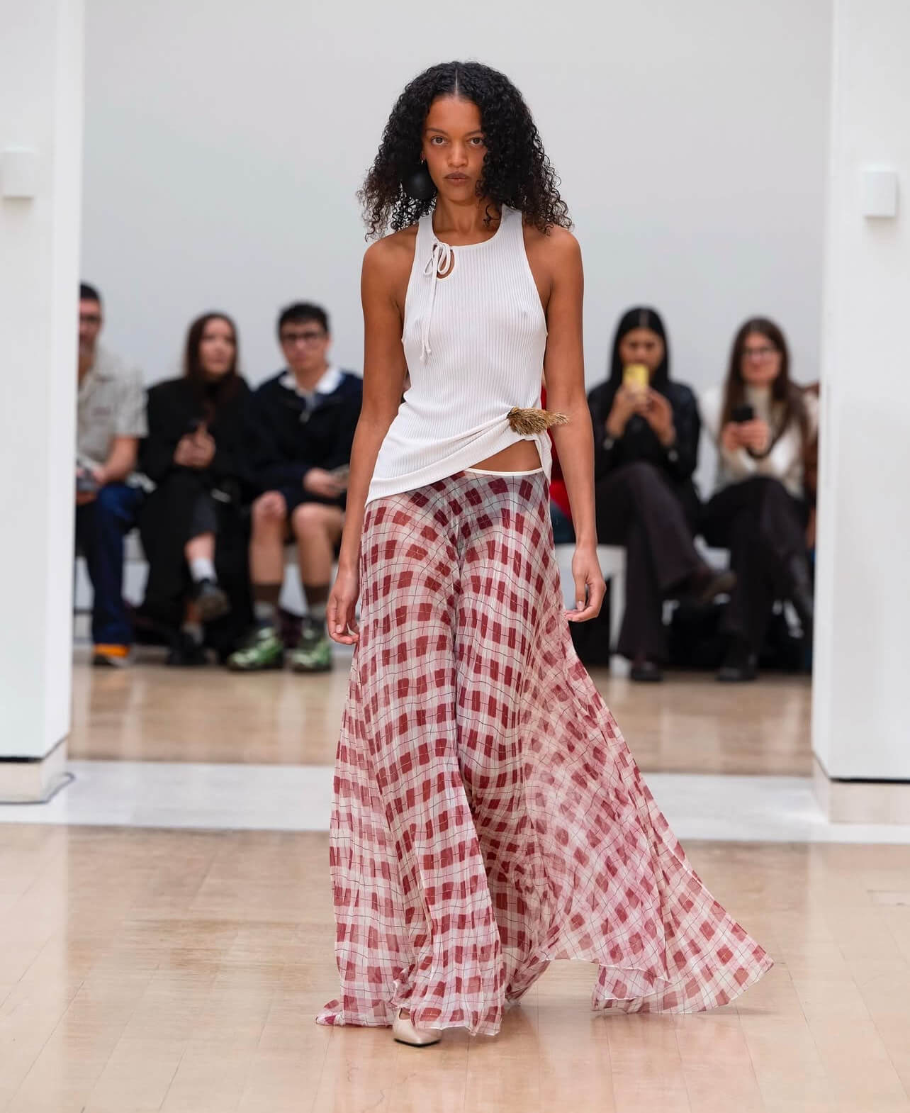 Στον οίκο S.S. Daley, είδαμε μια λευκή, αέρινη μάξι φούστα με πιέτες, φορεμένη πάνω από ένα μαύρο σλιπ και συνδυασμένη με ένα χαλαρό σακάκι. Το αποτέλεσμα; Κομψό, αλλά και τολμηρό. Από την άλλη, ο Simone Rocha παρουσίασε μια πιο «σοβαρή» εκδοχή με μια διάφανη μαύρη φούστα συνδυασμένη με πουκάμισο και ζακέτα. Αυτό το look αποδεικνύει πως ακόμα και οι πιο συντηρητικές μπορούν να δοκιμάσουν την τάση, αρκεί να το κάνουν με το σωστό styling.