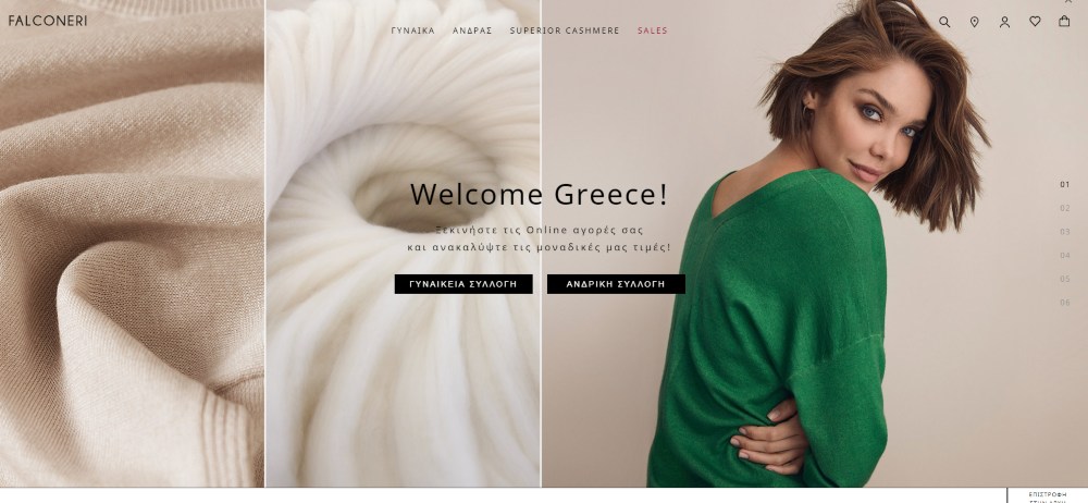 Περιηγηθείτε στο gr.falconeri.com και ανακαλύψτε τις ιδιαίτερες συλλογές – Γυναικείες και Ανδρικές – του ιταλικού knitwear brand με βάση τα εκπληκτικής ποιότητας φυσικά νήματα, επεξεργασμένα με απόλυτη δεξιότητα και κομψότητα.