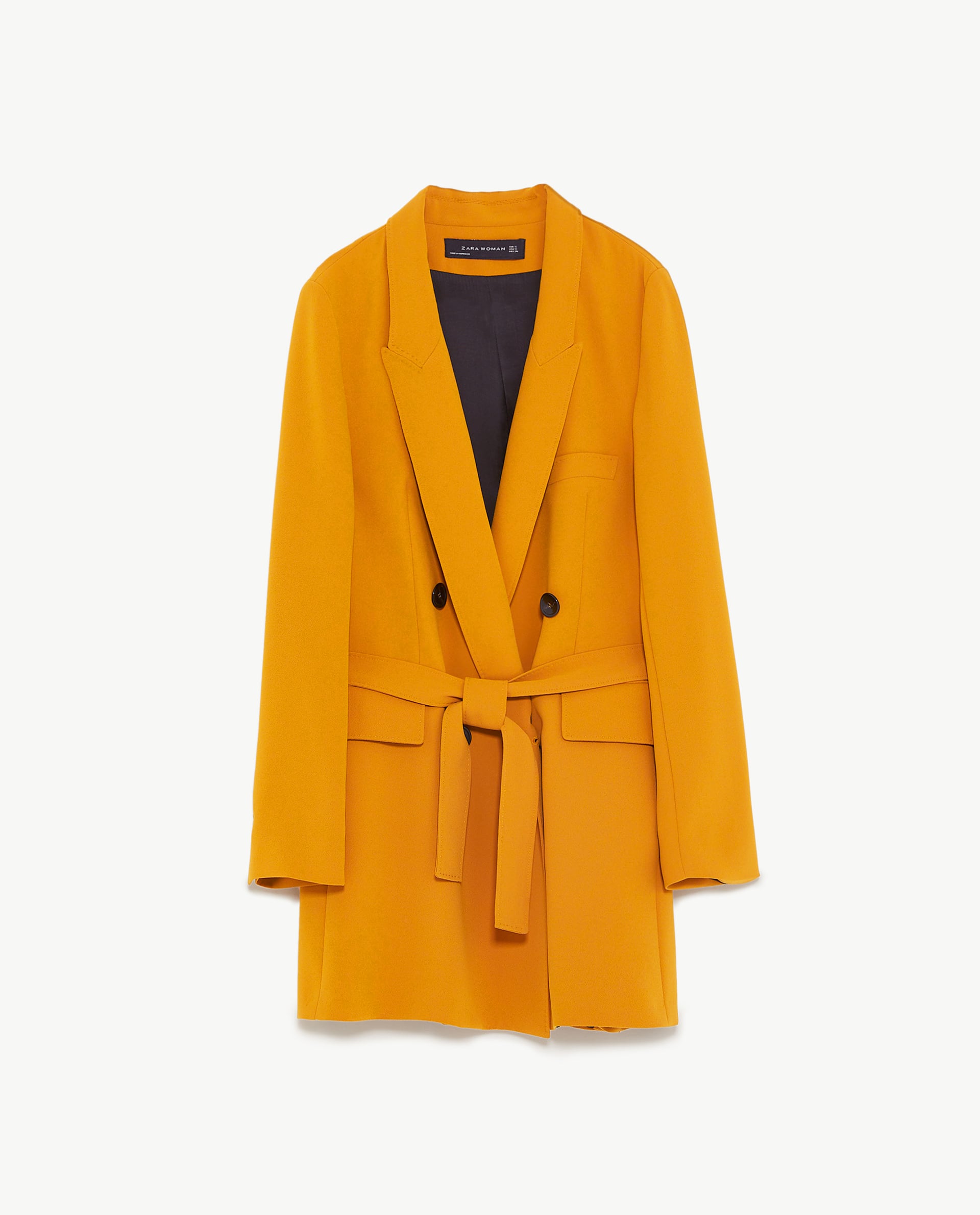 Σακάκι με ζώνη Zara, μπορείτε να το βρείτε εδώ.