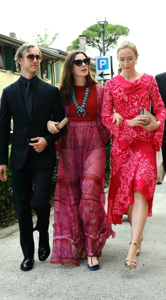 Valentino φόρεμα σε φούξια και κόκκινες αποχρώσεις το οποίο και συνδύασε με τιρκουάζ κολιέ στον λαιμό ενώ η Blunt διάλεξε ένα πιο ladylike look, ένα επίσης φούξια ασύμμετρο φόρεμα Peter Pilotto το οποίο συνδύασε με χρυσά πέδιλα.]]>