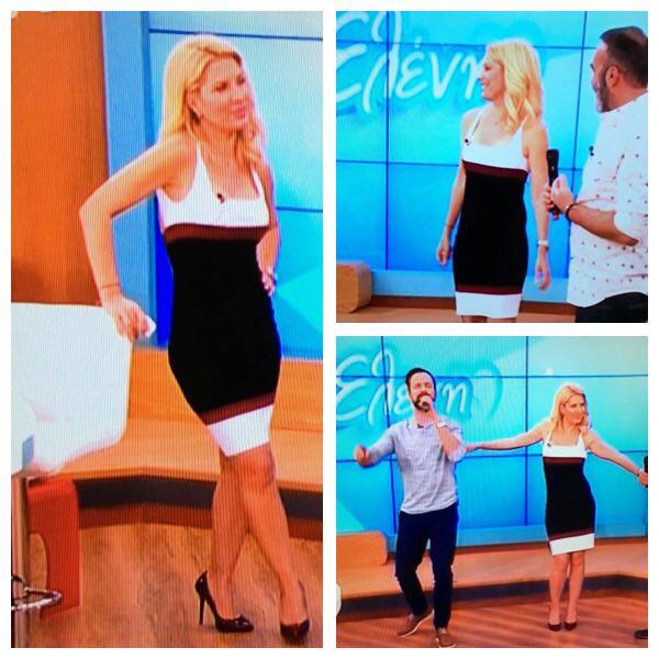 Η ωραία Ελένη λοιπόν φόρεσε ένα φόρεμα DSquared2 που μπορείτε να βρείτε στα καταστήματα Attica, το οποίο συνδύασε με ψηλοτάκουνες γόβες Nak. Επειδή το φόρεμα δεν ήταν μονόχρωμο, η παρουσιάστρια πολύ σωστά ολοκλήρωσε το look της με φυσικό μακιγιάζ και απλά χτενισμένα μαλλιά.