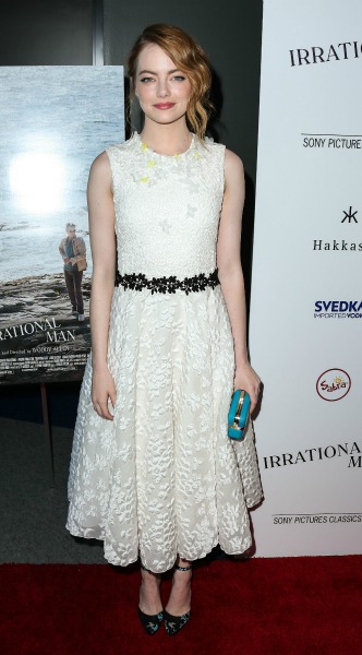 Η Emma Stone παραβρέθηκε στην πρεμιέρα της νέας της ταινίας Irrational Man -στην οποία πρωταγωνιστεί- με ένα θηλυκό κι άκρως ρομαντικό φόρεμα. Η όμορφη ηθοποιός επέλεξε μία δημιουργία του Giambattista Valli, κεντημένο με μικρά λουλουδάκια, το οποίο συνδύασε με γόβες Paul Andrew και κοσμήματα Jennifer Meyer. Ολοκλήρωσε το look με wavy hair και φρέσκο μέικαπ.