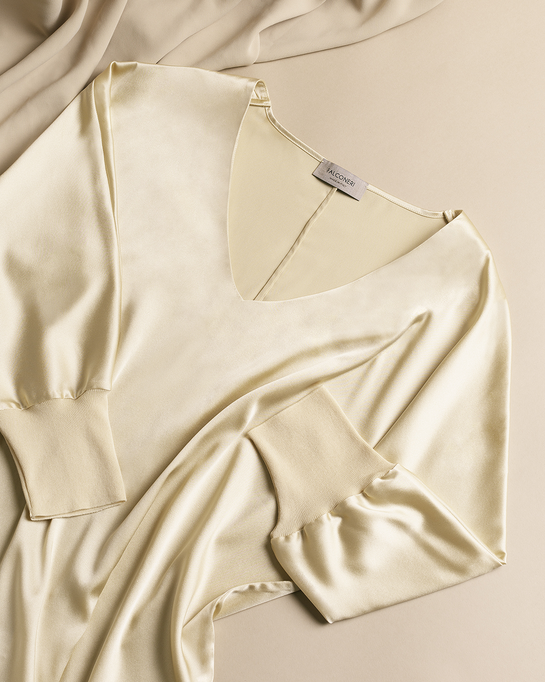 Η Silk Collection χαρακτηρίζεται από το ιδιαίτερα ελαφρύ και δροσερό νήμα της και χαρίζει σοφιστικέ στυλ και άνετη εφαρμογή στις καλοκαιρινές εμφανίσεις. Τα iconic κομμάτια της συλλογής χάρη στις φυσικές ίνες δίνουν έμφαση στη λεπτομέρεια. Με την υπογραφή του ιταλικού knitwear brand Falconeri, αποτελούν την ιδανική επιλογή για all time classic εμφανίσεις!
