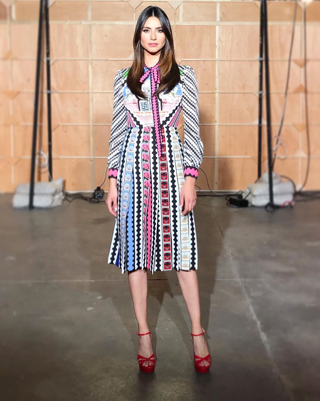 Εάν υπάρχει όμως ένα φόρεμα που μας έχει εντυπωσιάσει τον τελευταίο καιρό, αυτό είναι το φόρεμα που επέλεξε να φορέσει η Ηλιάνα Παπαγεωργίου στην πρεμιέρα του Greece’s Next Top Model. Το top model και παρουσιάστρια φόρεσε ένα midi φόρεμα από τη νέα συλλογή της σχεδιάστριας μόδας Μαίρης Κατράντζου. Το μοτίβο του φορέματος με τα χαρούμενο χρώματα, αλλά και η γραμμή του που είναι άκρως κολακευτική για τη γυναικεία σιλουέτα είναι μερικοί μόλις λόγοι για τους οποίους το ξεχωρίσαμε. Η Ηλιάνα μάλιστα απογείωσε το look της συμπληρώνοντας το με ένα ζευγάρι κόκκινα ψηλοτάκουνα πέδιλα.
