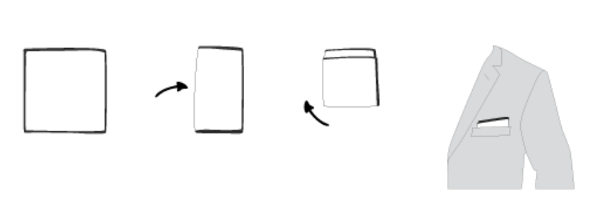Ίσιο δίπλωμα: Ένα πιο νεανικό δίπλωμα κατάλληλο για ένα business casual look. Προσέχουμε το μαντήλι να προεξέχει μόνο 1 εκ. από την τσέπη.