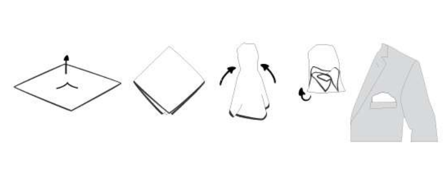 Τριγωνικό δίπλωμα: Η ιδέα εδώ είναι να προεξέχει ένα μικρό τριγωνικό ύφασμα από την τσέπη του σακακιού σας. Αρκετά εύκολο να γίνει, διπλώστε το όπως φαίνεται στην εεικόνα και θα έχετε αμέσως μια κομψή εμφάνιση!