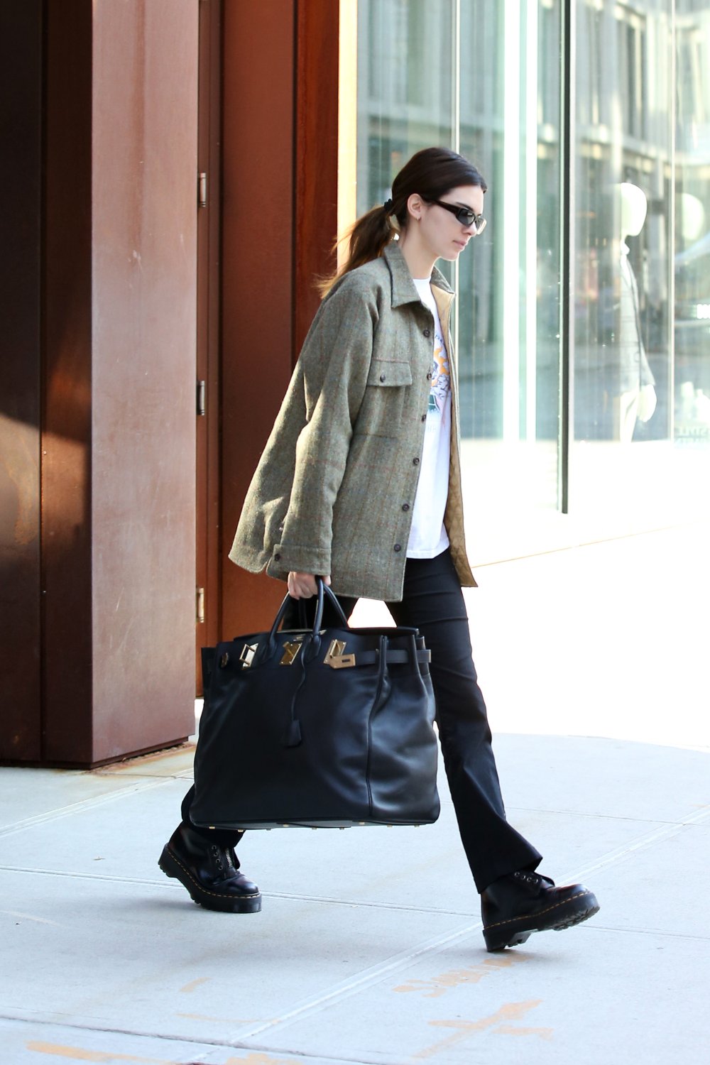 Μέχρι σήμερα είχαμε συνηθίσει να βλέπουμε τις Birkin τσάντες σε ένα συγκεκριμένο μέγεθος, εκείνο της handbag. Ο φωτογραφικός φακός όμως απαθανάτισε τη Kendall Jenner στους δρόμους της Νέας Υόρκης να κρατά μία Birkin τσάντα σε ένα μέγεθος που δεν είχαμε δει ποτέ ξανά. Το top model, το οποίο πραγματοποίησε εκδρομή στην ύπαιθρο μαζί με τη Gigi Hadid επέλεξε να χρησιμοποιήσει μία πολύ μεγάλη Birkin τσάντα με όλα όσα χρειαζόταν να έχει μαζί της.