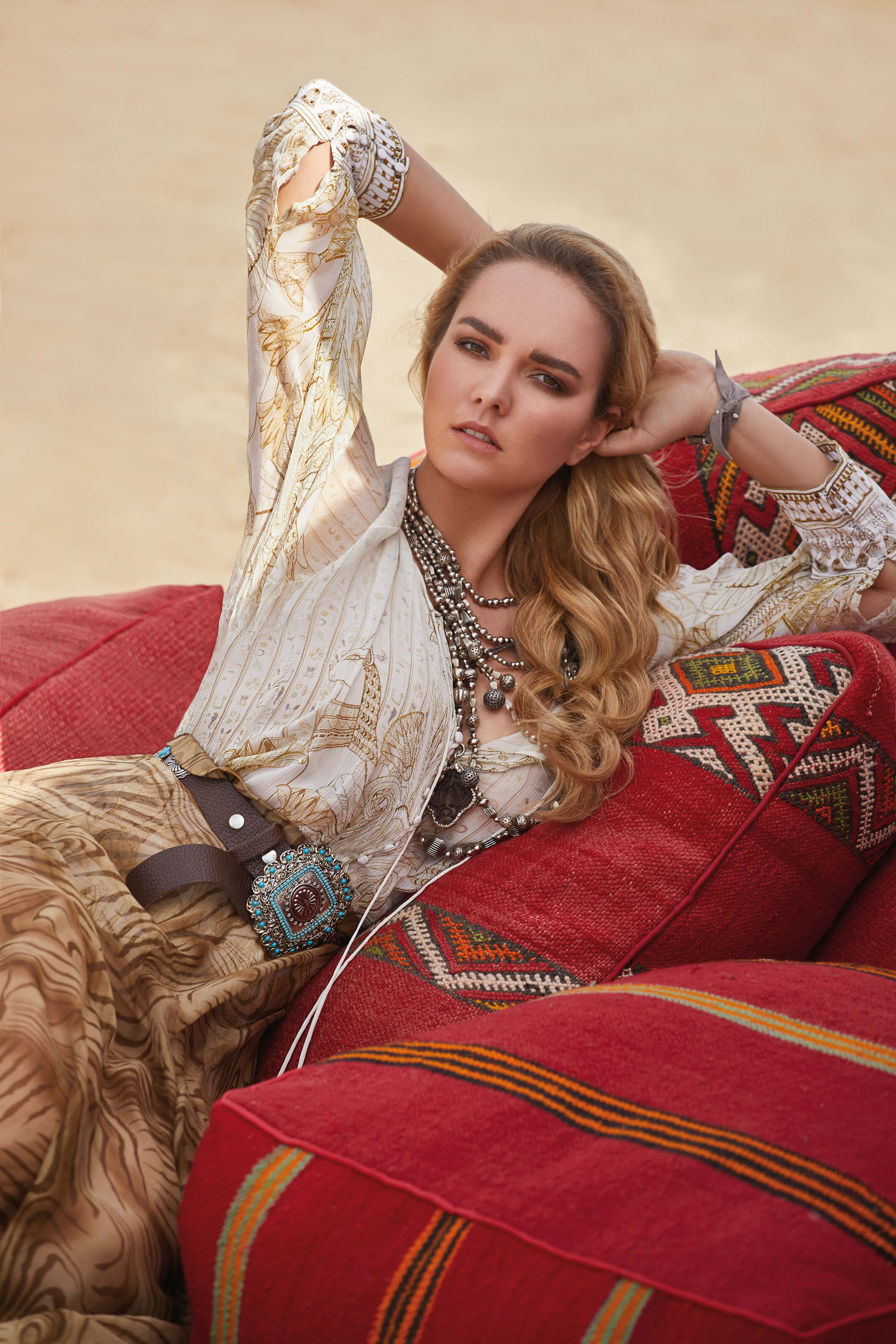 M.Ρ.: Θεωρώ πως είναι απόλυτα εναρμονισμένη με την αισθητική μου. Το στοιχείο της φύσης μαζί με τη νομαδική, bohemian διάθεση αντικατοπτρίζουν όχι μόνο το προσωπικό μου στιλ αλλά και τον χαρακτήρα μου. Είμαι άνθρωπος που προτιμά να περνά όσο περισσότερο χρόνο μπορεί έξω ανακαλύπτοντας φυσικά τοπία, και κατά τη διάρκεια της φωτογράφισης ένιωσα ελεύθερη να συνδεθώ με τα στοιχεία της θάλασσας και του αέρα.