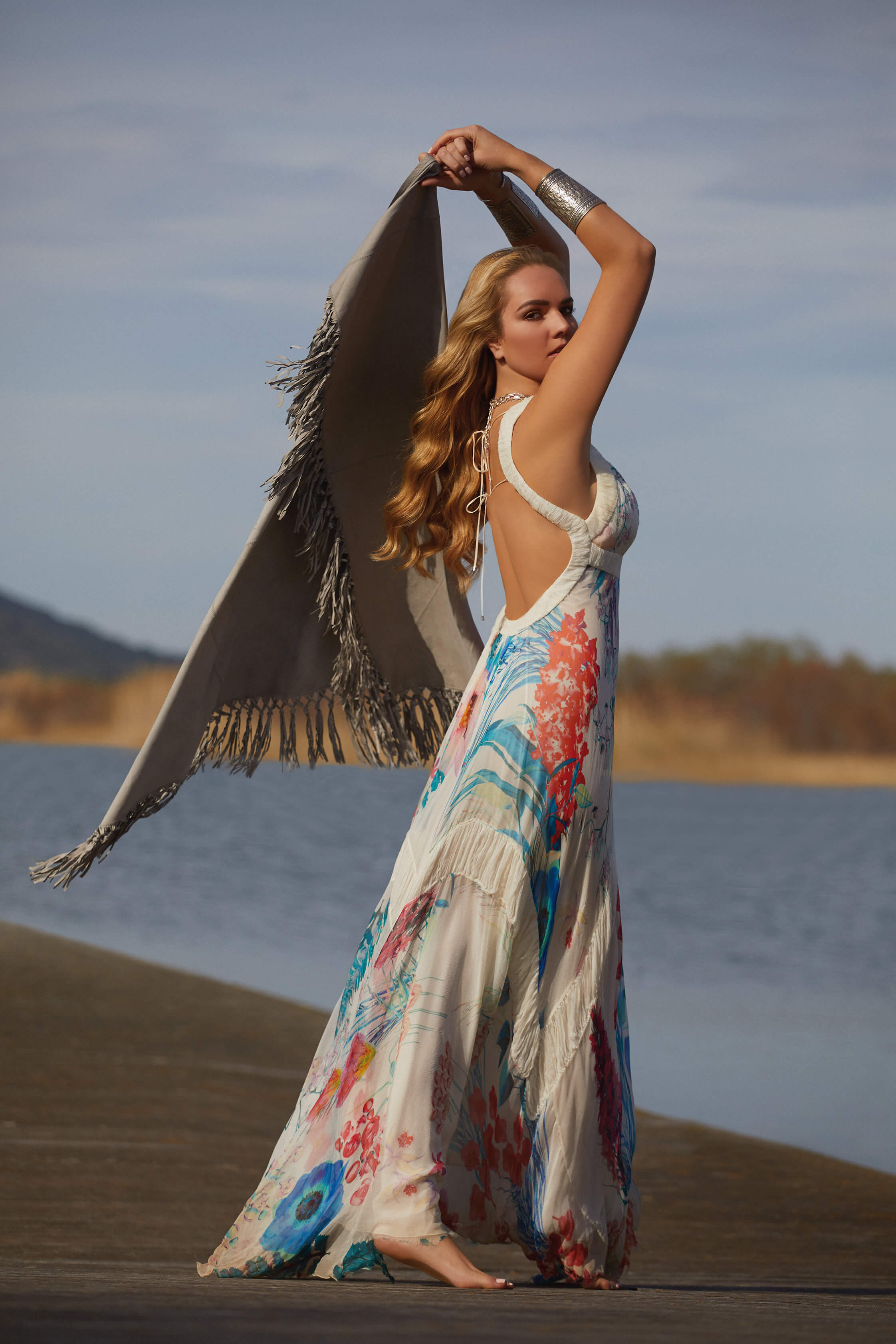 Με ελληνικές, ελβετικές και αυστριακές ρίζες, η Μαρίνα φωτογραφίζεται με φόντο τη θάλασσα, σ’ ένα απόλυτα φυσικό τοπίο, φορώντας μοναδικές boho δημιουργίες που αντανακλούν και το προσωπικό της στιλ. Η ίδια μου εξηγεί από πού αντλεί έμπνευση, αναφέρεται στην πολύτιμη κληρονομιά του ονόματος Swarovski, αφού είναι εγγονή της Μαρίνας Σβαρόβσκι, του γνωστού οίκου κοσμημάτων Swarovski, ενώ μιλά για τον σεβασμό που φέρει η κάθε της συλλογή στο περιβάλλον προάγοντας τις αξίες της βιώσιμης ανάπτυξης στη μόδα. Ακόμη, μοιράζεται μαζί μας το πάθος της για την τελειότητα αξιοποιώντας μοναδικά φίνες πρώτες ύλες και πρωτοποριακές τεχνικές.