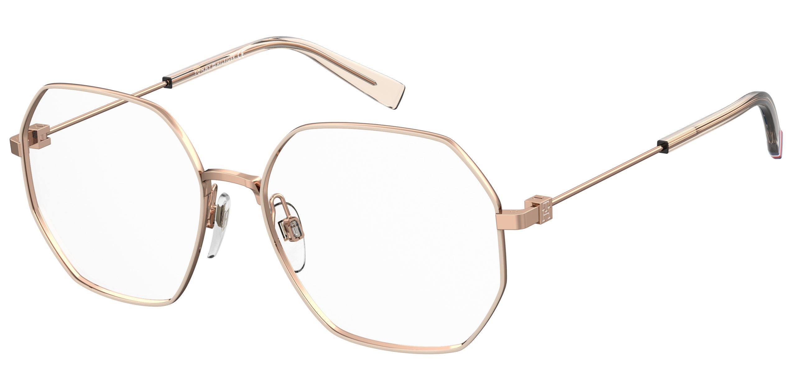 Μοντέλο TH 2097: Γυναικεία γυαλιά οράσεως σε εξαγωνικό σχήμα από ανοξείδωτο ατσάλι, με το λογότυπο – μονόγραμμα TH στους λεπτούς μεταλλικούς βραχίονες και την κόκκινη, λευκή και μπλε ρίγα να διακρίνεται στο αριστερό ακροβραχιόνιο. Τα ακροβραχιόνια διατίθενται σε: Χρυσό και μπεζ, Χρυσό και ροζ, Ματ μαύρο και χρυσό και Ασημί και πράσινο.