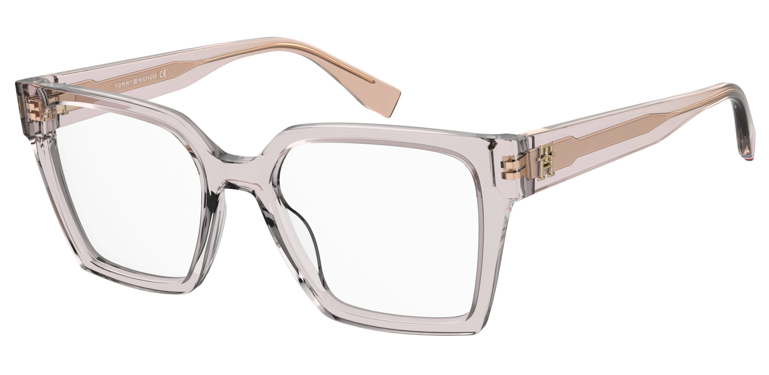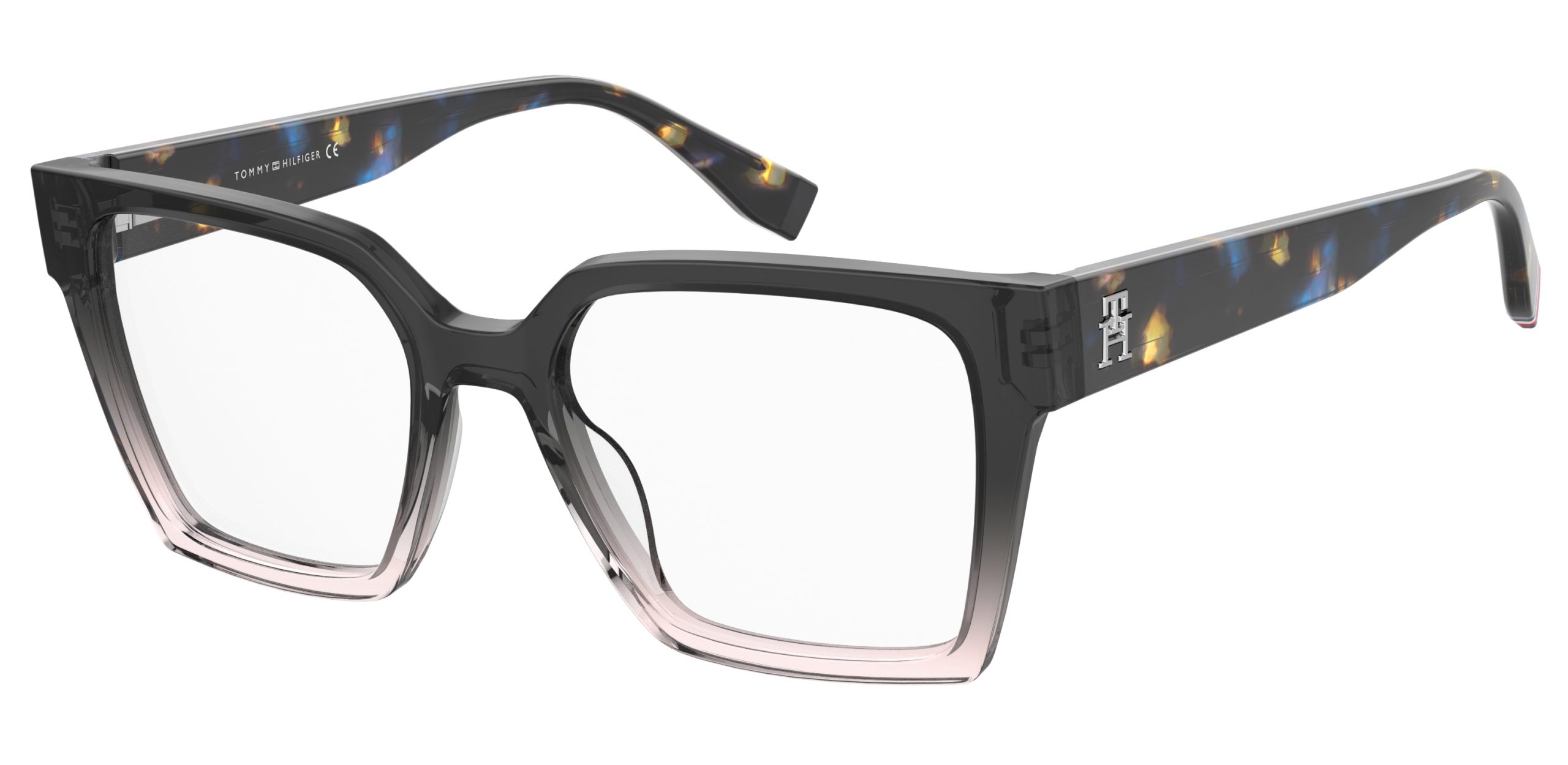 Μοντέλο TH 2103: Γυναικεία υπερμεγέθη γυαλιά οράσεως σε τετράγωνο σχήμα, με το λογότυπο – μονόγραμμα TH στους βραχίονες και την κόκκινη, λευκή και μπλε ρίγα να διακρίνεται στο αριστερό ακροβραχιόνιο. Τα γυαλιά διατίθενται σε: Γκρι και ροζ, Μαύρο, Ταρταρούγα, Διάφανο ροζ και Διάφανο μπλε.