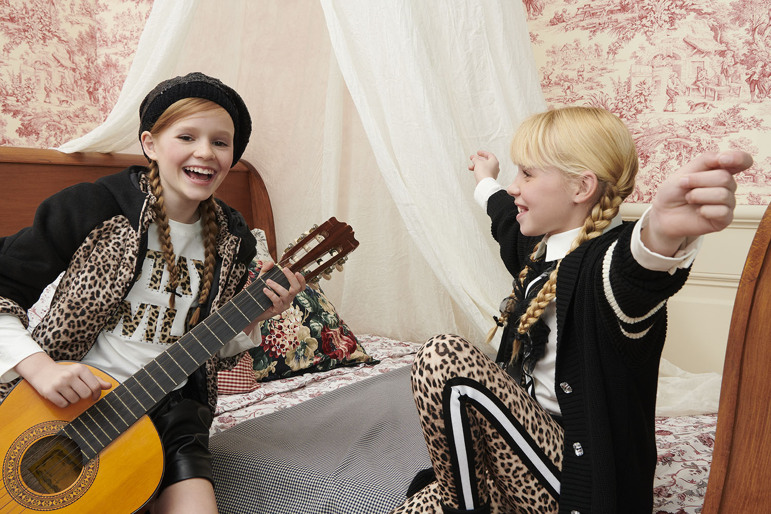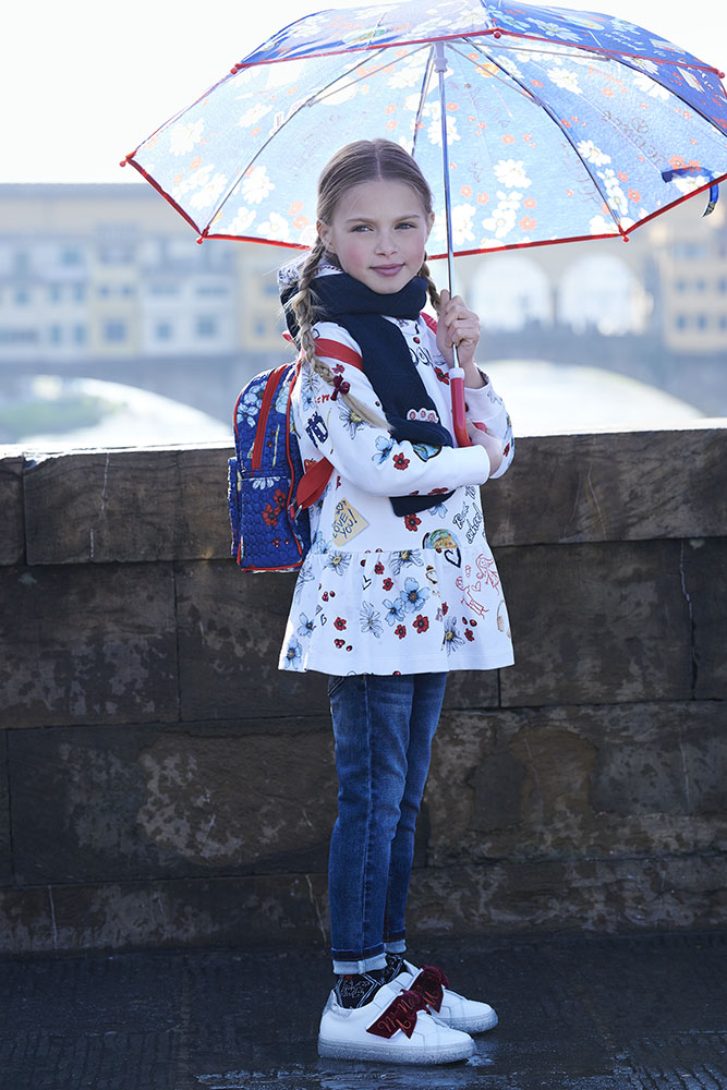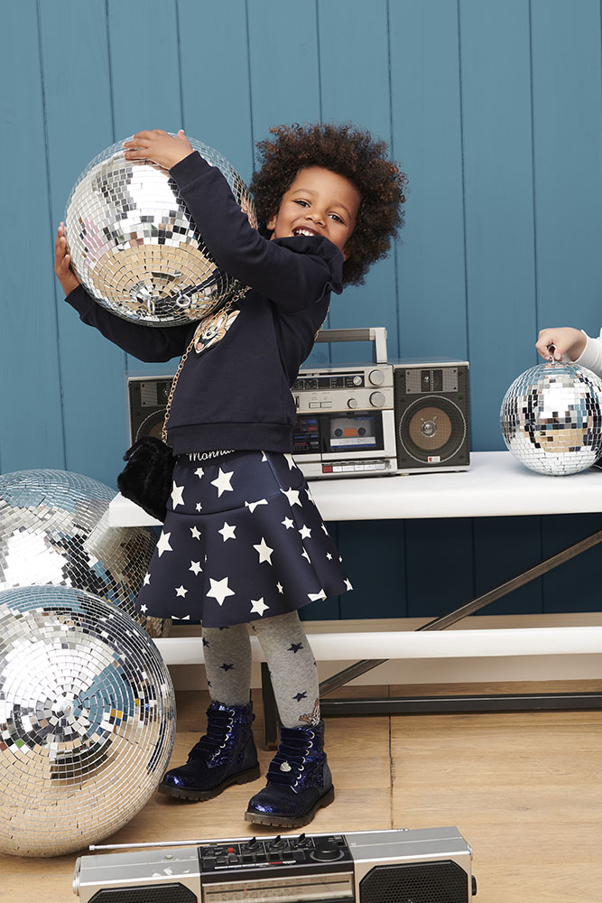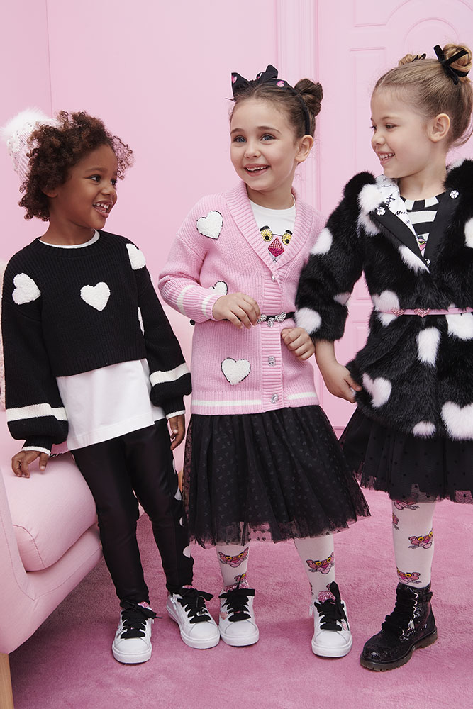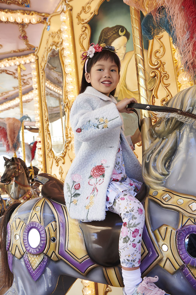 Υπάρχουν πολλά εντυπωσιακά κομμάτια: τα πουκάμισα με την παγέτα, με βελούδινο κολάρο ή ποπλίνα με τούλινες λεπτομέρειες, τα ψηλόμεσα ταρτάν ή βελούδινα παντελόνια, τα εντυπωσιακά biker jackets από οικολογικό δέρμα, τα κεντημένα denim επίσης από οικολογικό δέρμα με χνουδωτή ή fleece λαιμόκοψη, οι πλισέ φούστες με τα χρώματα που κάνουν αντίθεση στις τσέπες ή οι τούλινες προσθήκες επάνω στις denim φούστες, τα γιλέκα με τις ρομαντικές συνθέσεις εμπνευσμένες από τη φύση, το υπέροχο μάλλινο παλτό με όψη που θυμίζει λούτρινο αρκουδάκι έτοιμο να υποδεχθεί τον χειμώνα ζεσταίνοντας τις μικρές δεσποινίδες.