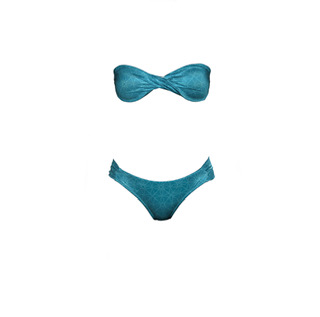 Στη φετινή συλλογή κυριαρχεί το κεραμιδί, το cerulian cyan, το dusty pink και το μπλε, ενώ δε λείπει το αγαπημένο της σχεδιάστριας λευκό – χρυσό, στο signature μοτίβο της με το κοχύλι – ιδανικό και για bridal μαγιό.