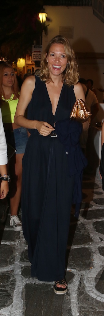 Η Βίκυ Καγιά βρέθηκε το σαββατοκύριακο που μας πέρασε στη Μύκονο, όπου παραβρέθηκε και στο πάρτι της μπουτίκ Louis Vuitton, εντυπωσιάζοντας για ακόμα μια φορά με το απέριττο αλλά συνάμα εντυπωσιακό στιλ της. Η όμορφη επιχειρηματίας επέλεξε για μια βραδινή της έξοδο ένα φόρεμα Orsalia Parthenis, σε αρχαιοελληνικό στιλ, το οποίο συνδύασε με gladiator σανδάλια από την ελληνική φίρμα Esiot και μεταλλιζέ τσαντάκι.
