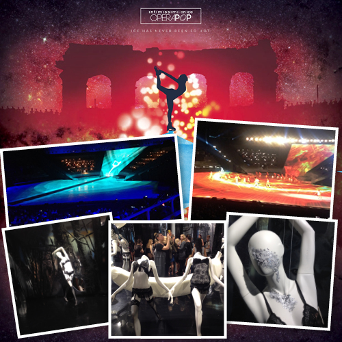 Το Calzedonia Group, μέλος του οποίου είναι και η Intimissimi, στηρίζει εδώ και χρόνια όλες τις παραστάσεις που πραγματοποιούνται στην Arena di Verona, έτσι αυτή τη φορά, η δημιουργική ομάδα, αποφάσισε να διοργανώσει μια pop όπερα, πάνω στον πάγο (!) τα κοστούμια της οποίας ήταν εμπνευσμένα από το στιλ και τη φιλοσοφία της εταιρείας και σχεδιασμένα από τον μοναδικό και πολύ ταλαντούχο Ali Mahdavi (ο ενδυματολόγος που συνεργάζεται με τον Thierry Mugler). Πριν ξεκινήσει το show μας περίμενε μια ευχάριστη έκπληξη, η διεθνούς φήμης τραγουδίστρια Anastacia έκανε την εμφάνισή της στην -παγωμένη- σκηνή και το κοινό ξεσηκώθηκε με τα τραγούδια της. Το καλύτερο όμως δεν είχε αρχίσει ακόμα.