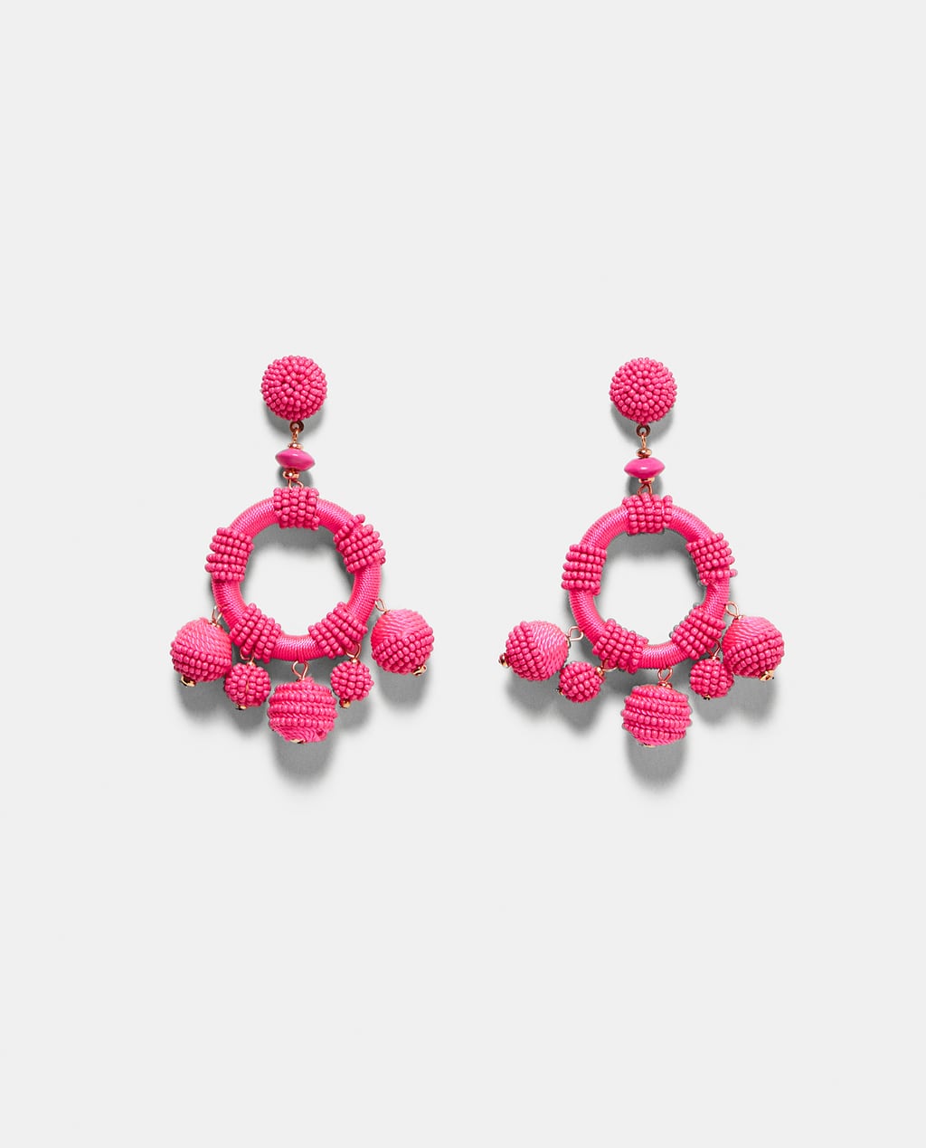 Κρεμαστά σκουλαρίκια με χάντρες και λουλούδια Zara, €15.95, μπορείτε να τα βρείτε εδώ.