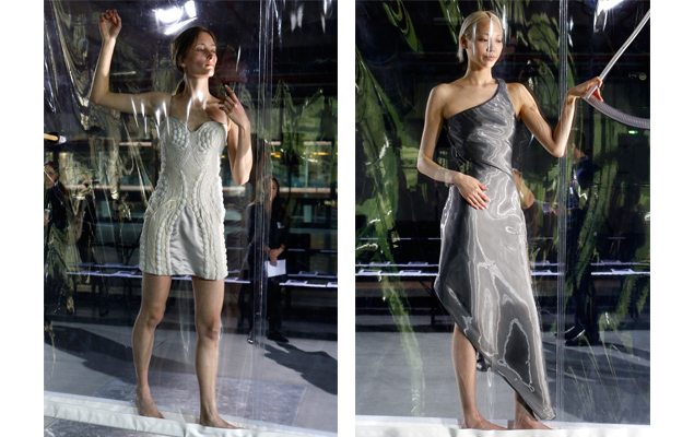 Μία περίεργη δοκιμασία περίμενε τα μοντέλα που έλαβαν μέρος στην επίδειξη της διάσημης Ολλανδής σχεδιάστριας που έχει ντύσει μεταξύ άλλων τις Lady Gaga και Daphne Guinness: μερικά από αυτά, κλήθηκαν να μπουν σε μία πλαστική σακούλα, από όπου ανέπνεαν μέσω ενός πλαστικού σωλήνα. Λεπτομέρεια; Ο σωλήνας ρουφούσε τον αέρα, όπως ακριβώς λειτουργεί μία ηλεκτρική σκούπα, όσο ένα μικρότερο σε διάμετρο σωληνάκι τους τροφοδοτούσε με οξυγόνο. Ναι, καλά ακούσατε.