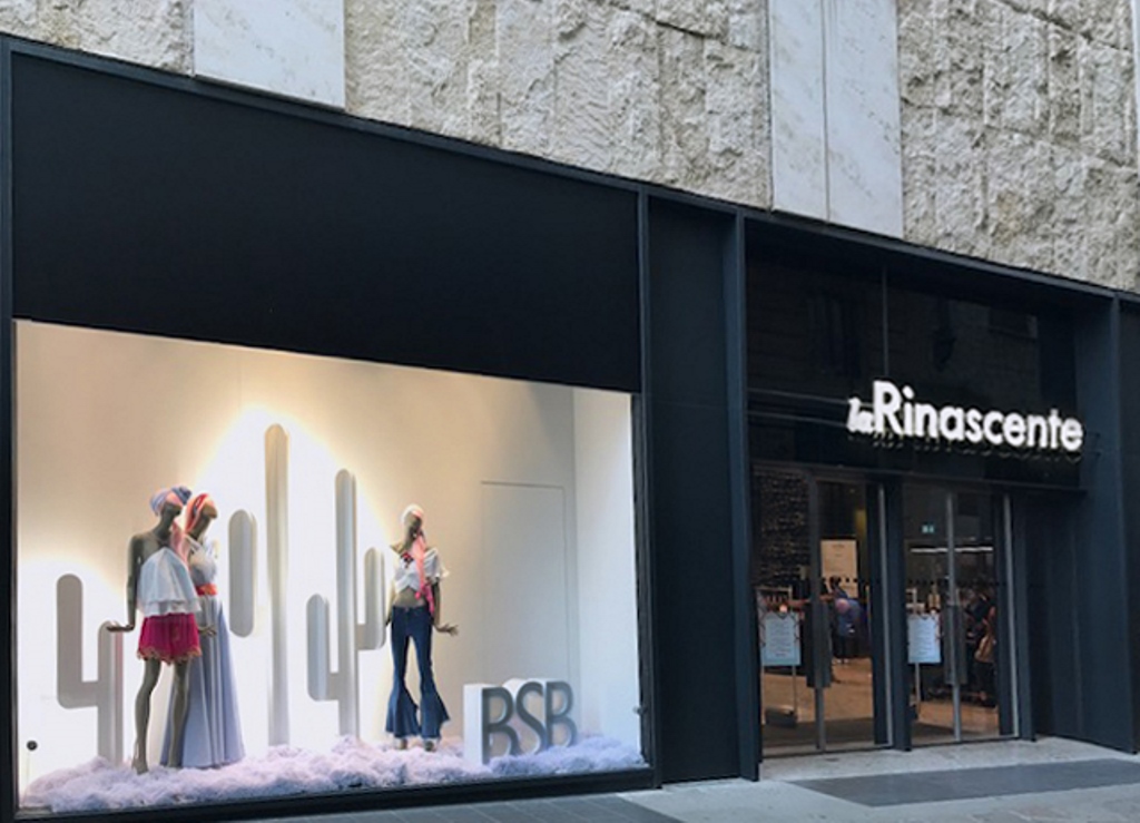 Σηματοδοτώντας την δυναμική πορεία και εξέλιξη του brand αλλά και την αποδοχή του από τις Ευρωπαϊκές μητροπόλεις της μόδας, η BSB «κατέκτησε» δικαίως μια ξεχωριστή θέση στην κεντρική εξωτερική βιτρίνα του εμπορικού κέντρου LA RINASCENTE. Eπιπλέον, το τμήμα styling του εμπορικού κέντρου επέλεξε και έντυσε τις κούκλες στις κυλιόμενες σκάλες που οδηγούν στον 1ο όροφο -fashion section- αποκλειστικά με ρούχα BSB!