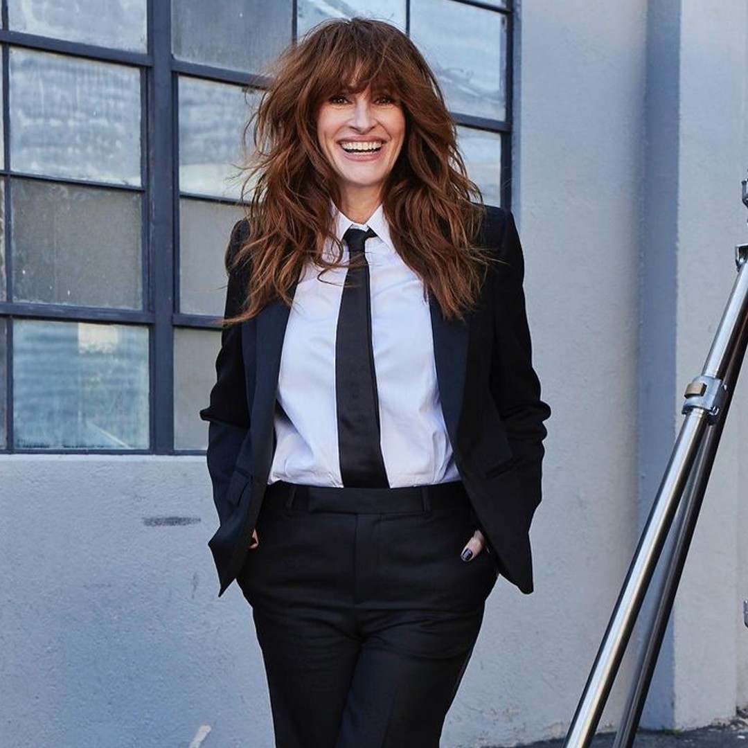 Η ηθοποιός επέλεξε να διατηρήσει τα αξεσουάρ και τα κοσμήματά της στο ελάχιστο. Με ένα χρυσό δαχτυλίδι σε σχήμα σφραγίδας και λίγα κοσμήματα, η Julia άφησε το σταυρωτό της σακάκι και τα νέα μαλλιά να γίνουν το επίκεντρο της προσοχής.