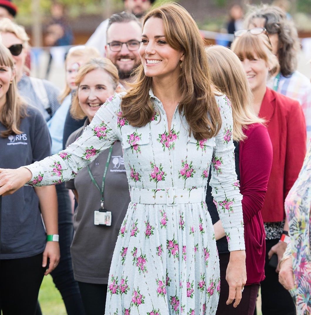 Σε αυτή την περίσταση, η Kate Middleton επέλεξε να φορέσει ένα midi φόρεμα της σχεδιάστριας Emilia Wickstead διακοσμημένο με λουλούδια και το συνδύασε με ένα ζευγάρι ψηλοτάκουνες nude εσπαντρίγιες.