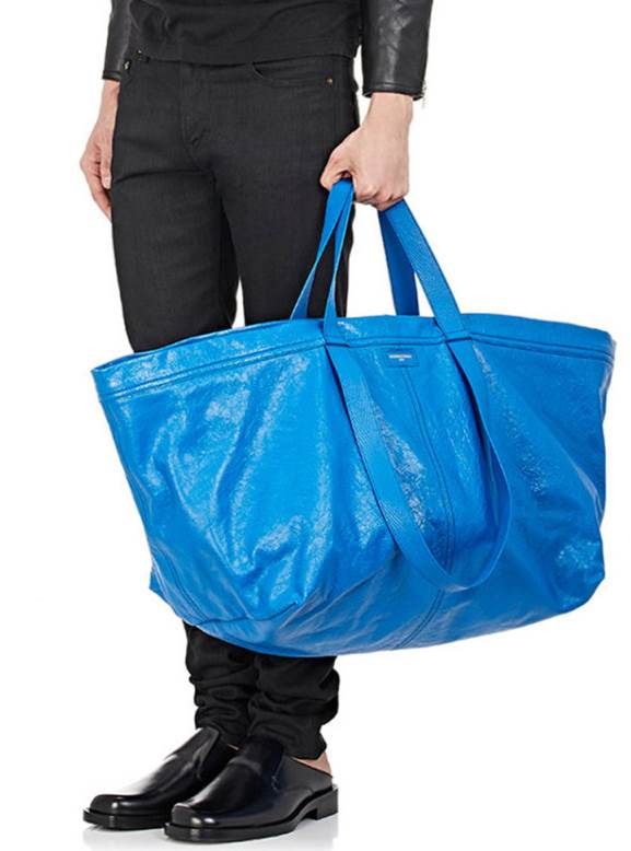 Τώρα λοιπόν, και αφού κάποιες bloggers είχαν εντοπίσει ότι επρόκειτο να γίνει trend η συγκεκριμένη τσάντα, πολλοί είναι αυτοί που παρατήρησαν ιδιαίτερη ομοιότητα σε μια τσάντα του Balenciaga με αυτή των IKEA. Η βασική διαφορά βέβαια είναι η τιμή τους, μιας και αυτή του γνωστού Οίκου κοστίζει κάτι παραπάνω από 2000 ευρώ. Το δέρμα της τσάντας του Balenciaga είναι επεξεργασμένο με τέτοιον τρόπο που θυμίζει κάπως το πλαστικό από το οποίο είναι φτιαγμένες οι τσάντες των IKEA ενώ και η απόχρωση είναι ολόιδια.