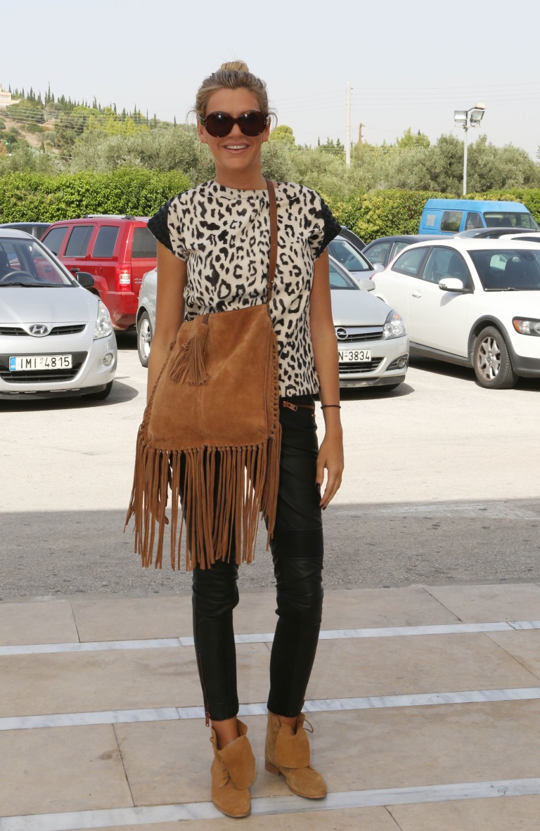 Η Σάσα Σταμάτη εμφανίστηκε χτες στη σύσκεψη για την εκπομπή Πρω1νό με ένα πολύ ιδιαίτερο look που δεν θα μπορούσαμε παρά νααποθεώσουμε. Η παρουσιάστρια επέλεξε ένα δερμάτινο παντελόνι Superdry, το οποίο συνδύασε με aninal print μπλούζα Replay OneOff, σουέντ τσάντα με κρόσσια Mango και μποτάκια Zara. Ολοκλήρωσε το look με γυαλιά ηλίου ταρταρούγα Celia Kritharioti.