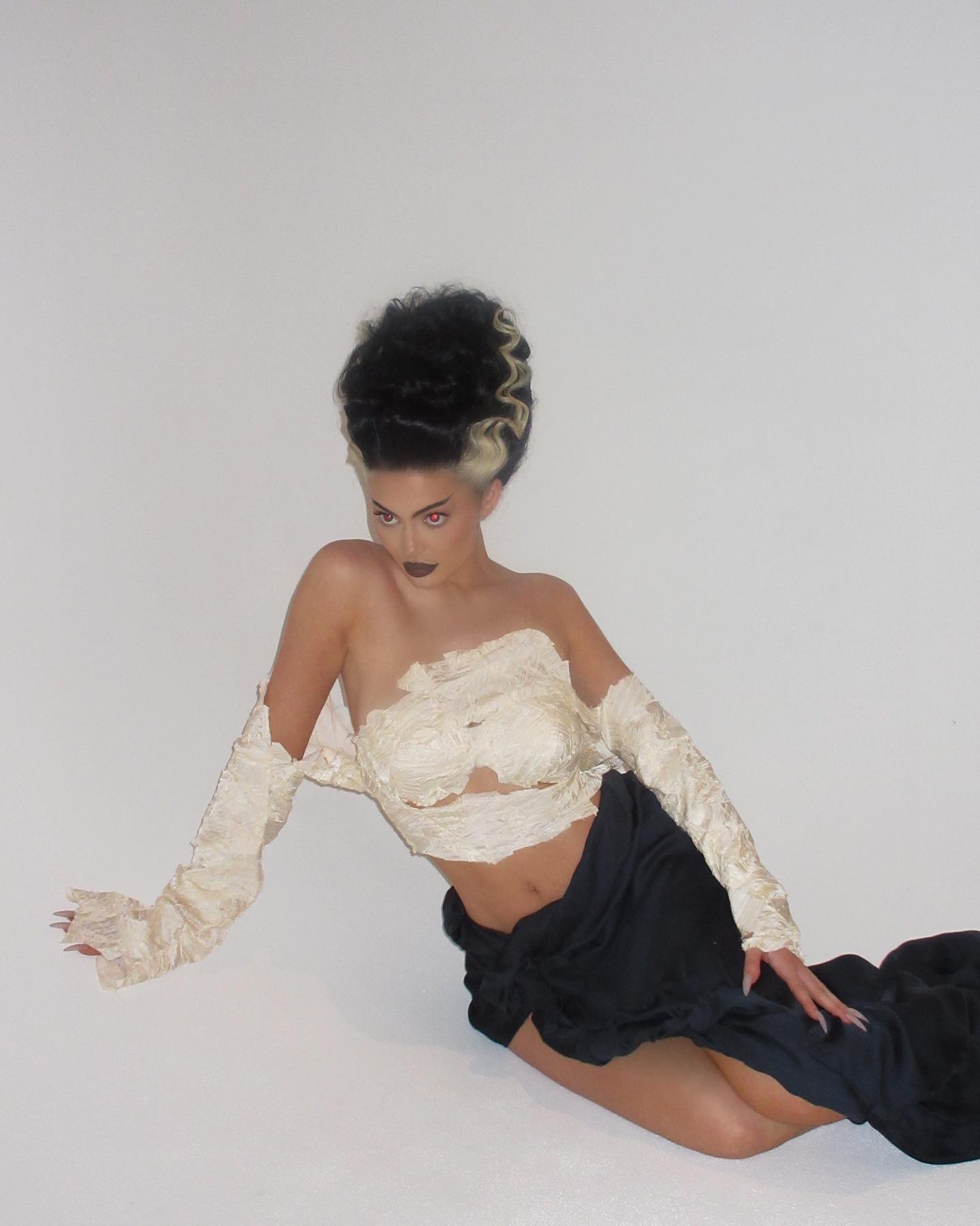 Η τηλεπερσόνα και ιδρύτρια της Kylie Cosmetics εντυπωσίασε με το κοστούμι της ως “νύφη του Φρανκενστάιν”, μεταφέροντας επακριβώς την αισθητική της ταινίας τρόμου του 1935, “Bride of Frankenstein”.