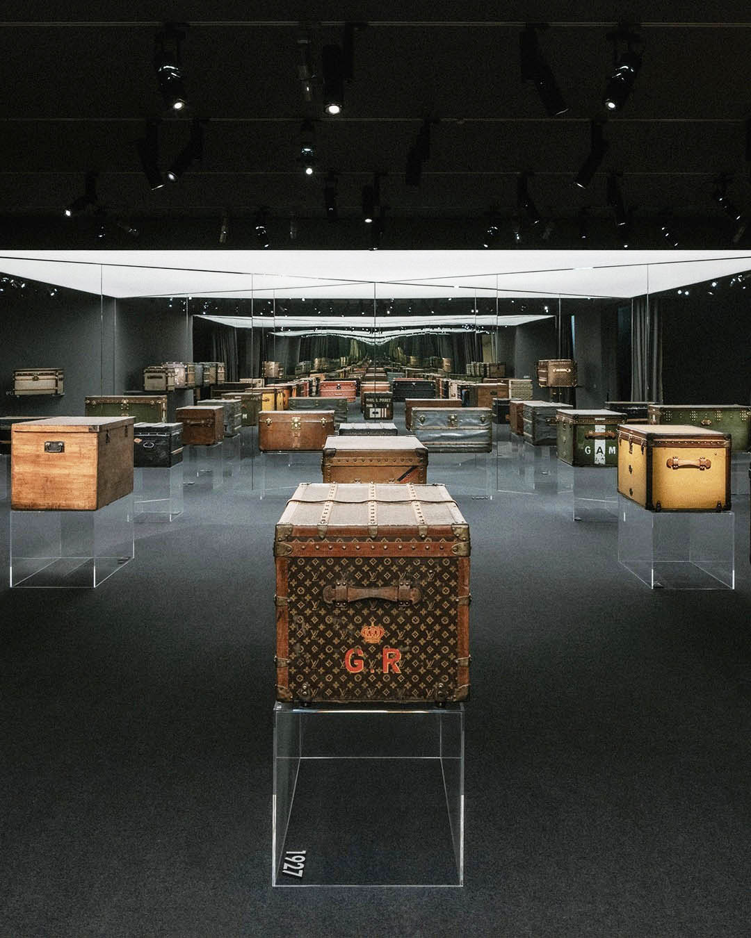 Durant les rénovations le bâtiment prendra la forme d’une malle monogramme géante siglée au logo de la marque.