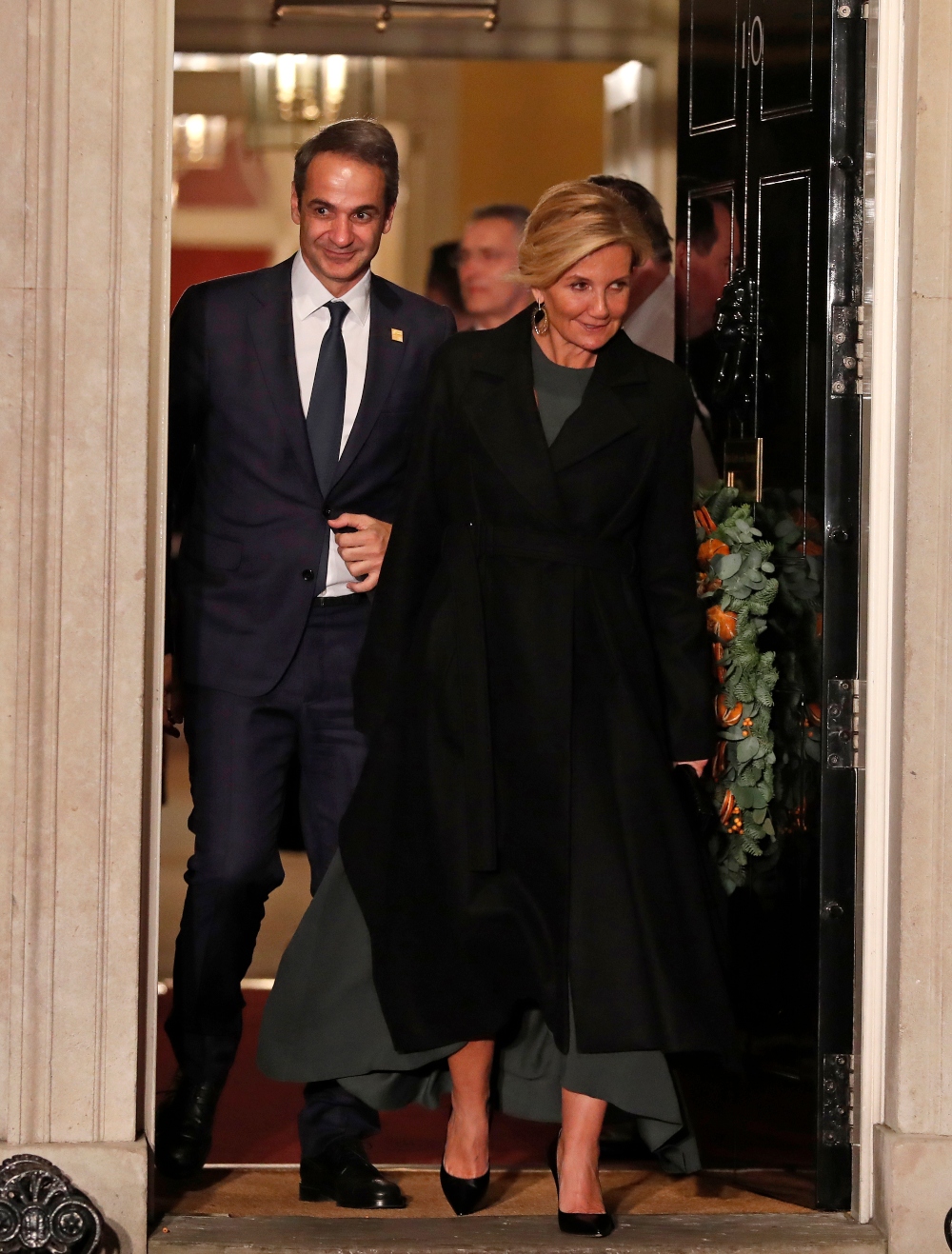 Για ακόμα μία φορά, η Μαρέβα Μητσοτάκη δημιούργησε ένα πολύ κομψό look, φορώντας το Ariana φόρεμα σε απόχρωση olive green από το brand στο οποίο είναι συνιδιοκτήτρια, Zeus+Dione. Το ασύμμετρο midi φόρεμα της, τόνιζε τη μέση της, ενώ οι cut out λεπτομέρειες και οι πιέτες δημιουργούσαν ένα άκρως εντυπωσιακό αποτέλεσμα. Ολοκλήρωσε την εμφάνιση της με μαύρες ψηλοτάκουνα γόβες, χρυσά διαμαντένια σκουλαρίκια και μαύρο παλτό.
