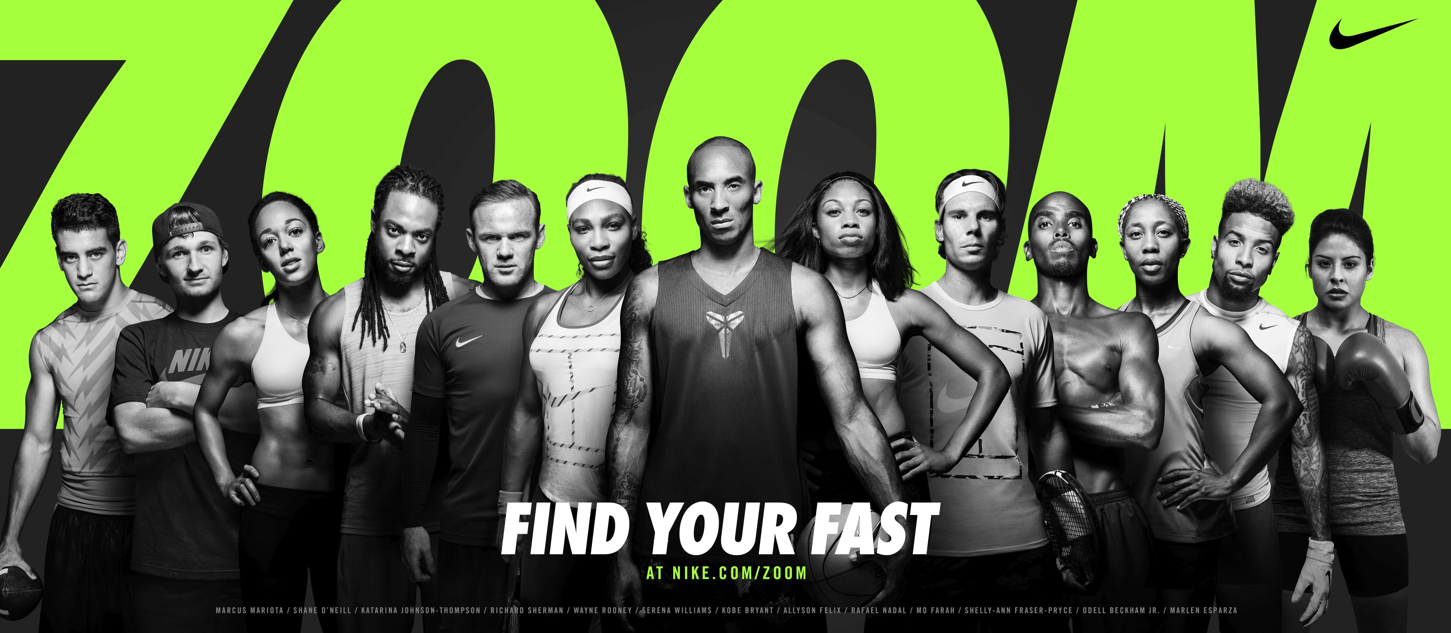 Πολλοί από τους μεγαλύτερους αθλητές παγκοσμίως προπονούνται ή αγωνίζονται φορώντας παπούτσια με την τεχνολογία Nike Zoom Air. Το Nike Zoom Air Elite, αγαπημένο μοντέλο μεταξύ πολλών κορυφαίων δρομέων, παίζει πρωταγωνιστικό ρόλο στην καμπάνια. Οι αθλητές κάθε επιπέδου μπορούν να βελτιώσουν την ταχύτητά τους, είτε αυτό σημαίνει να κινούνται γρήγορα από τη μία βολή στην άλλη σε ένα γρήγορο παιχνίδι τένις, είτε να πραγματοποιούν γρήγορες πλευρικές αλλαγές σε έναν αγώνα ποδοσφαίρου ή σε έναν αγώνα μπάσκετ.