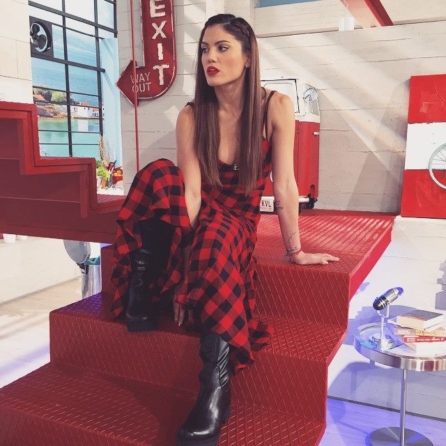 Η παρουσιάστρια, που συνήθως επιλέγει casual looks, εμφανίστηκε στη εκπομπή της Παρασκευής του Πρω1νού του Αντ1 με ένα tartan φόρεμα Ralph Lauren Denim And Supply το οποίο συνδύασε με Motor Bike Store μπότες με πλατφόρμα και τα μαλλιά της χτενισμένα ίσια. Ολοκλήρωσε το look με κόκκινο κραγιόν.