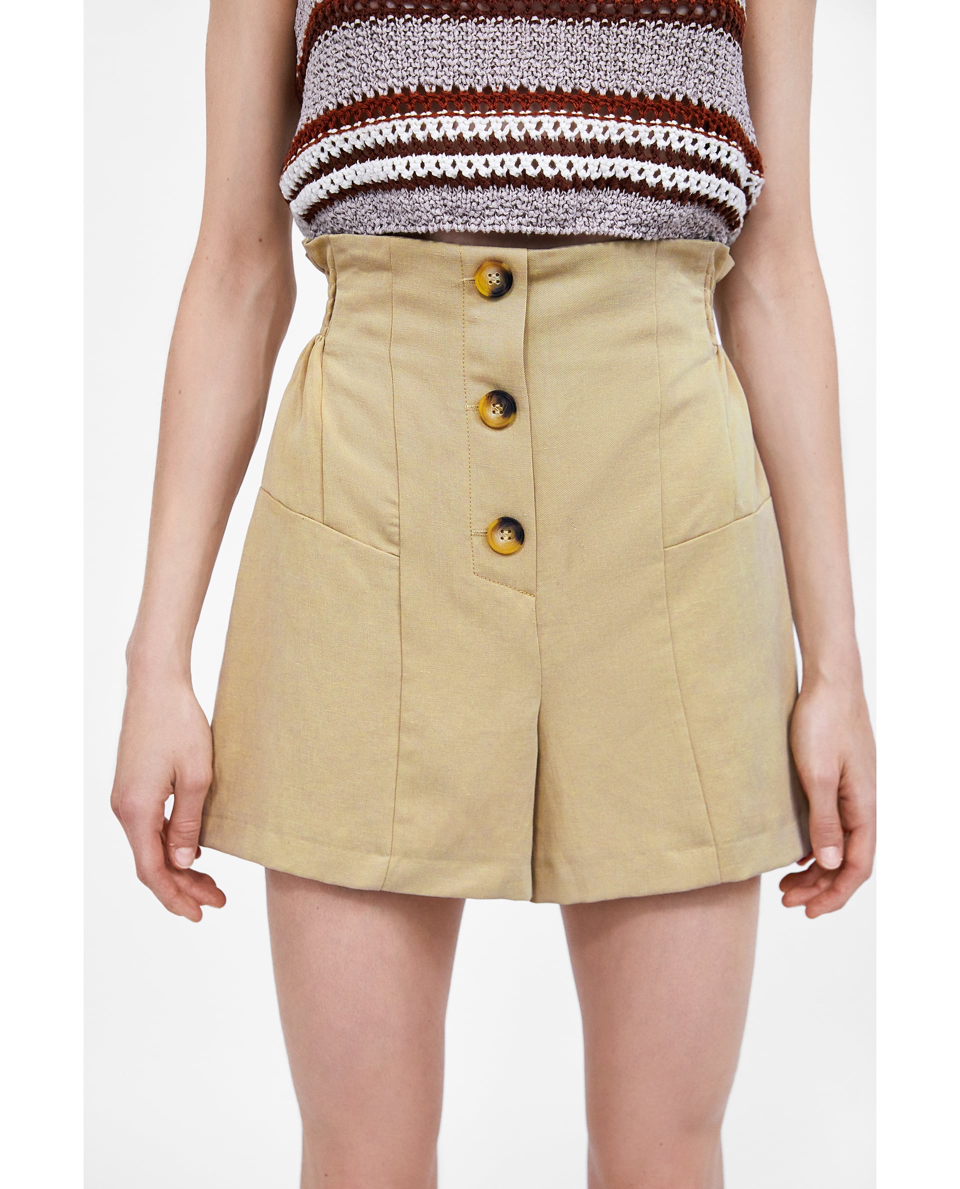 Μπεζ βερμούδα Zara με κουμπιά, €29,95. Βρείτε την εδώ.