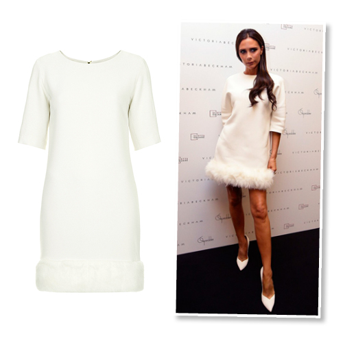 Αν λοιπόν θέλετε να ντυθείτε σαν τη Victoria Beckham εμείς προτείνουμε να αντιγράψετε το συγκεκριμένο outfit που θα σας κοστίσει και ελάχιστα. Η γνωστή, βρετανική εταιρεία Topshop διαθέτει ένα φόρεμα που μοιάζει με αυτό που έχει σχεδιάσει και φοράει το fashion icon και κοστίζει μόνο 72 ευρώ. Δεν ξέρουμε αν έχουν διαφορά στην ποιότητα -που για να είμαστε ειλικρινείς οφείλουμε να παραδεχτούμε πως μάλλον θα έχουν- πάντως το σχέδιο όπως μπορεί να δείτε είναι σχεδόν ίδιο.