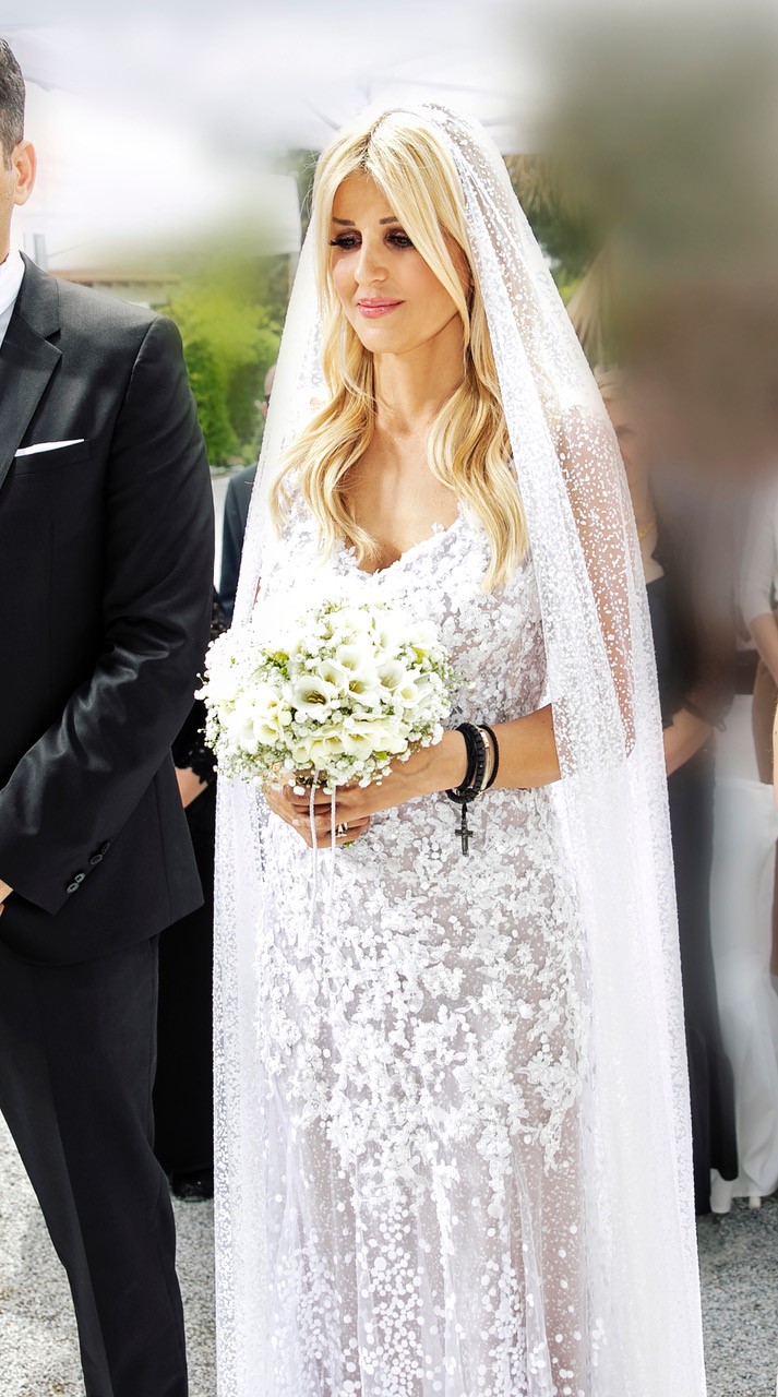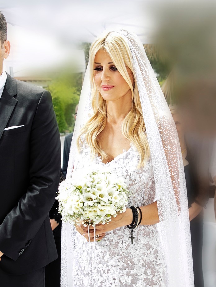 Και μπορεί σε εκείνο το post να μην μπορούσαμε να διακρίνουμε ξεκάθαρα το νυφικό της, πλέον όμως έχουν κυκλοφορήσει αρκετές πληροφορίες και φωτογραφίες. Το νυφικό της Έλενας Ράπτη είναι δημιουργία της Celia Kritharioti couture. Το νυφικό της φόρεμα ήταν διακοσμημένο με διαφάνειες και γαλλικές δαντέλες, όλες κεντημένες στο χέρι, ενώ η μακριά κουάφ από μεταξωτό πουαντιγιε τούλι έκαναν το νυφικό της φόρεμα ακόμα πιο κομψό και chic.