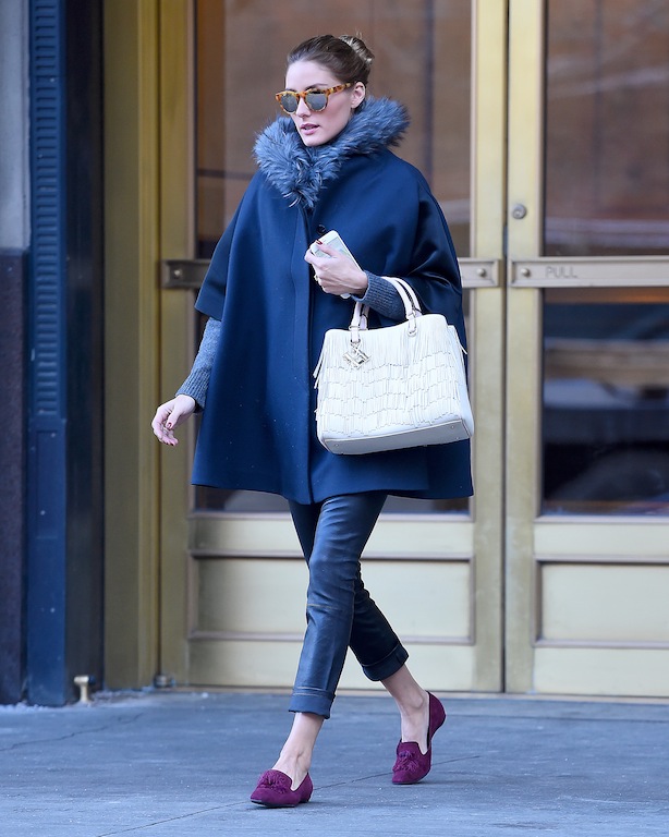 Είναι το μεγαλύτερο fashion icon της Αμερικής, κατά την ταπεινή μας γνώμη. Και φροντίζει να το αποδεικνύει με κάθε της εμφάνιση, είτε για να πάει βόλτα τον σκύλο της είτε για να δώσει το παρών σε κάποιο επίσημο event. Η Olivia Palermo απαθανατίστηκε σε έξοδό της στο Brooklyn της Νέας Υόρκης, με ένα κομψό σύνολο που αποτελούνταν από πουλόβερ, κάπα, γούνινο γιακά, δερμάτινο παντελόνι και μωβ slippers από το Barney’ s. Ολοκλήρωσε το look με off-white τσάντα CH Carolina Herrera και γυαλιά ηλίου Westward Leaning.