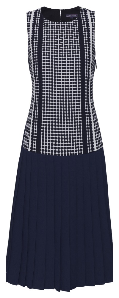 The Navy Cocktail Dress: Όλο και περισσότερο με ένα πτυχωτό, printed αμάνικο φόρεμα.