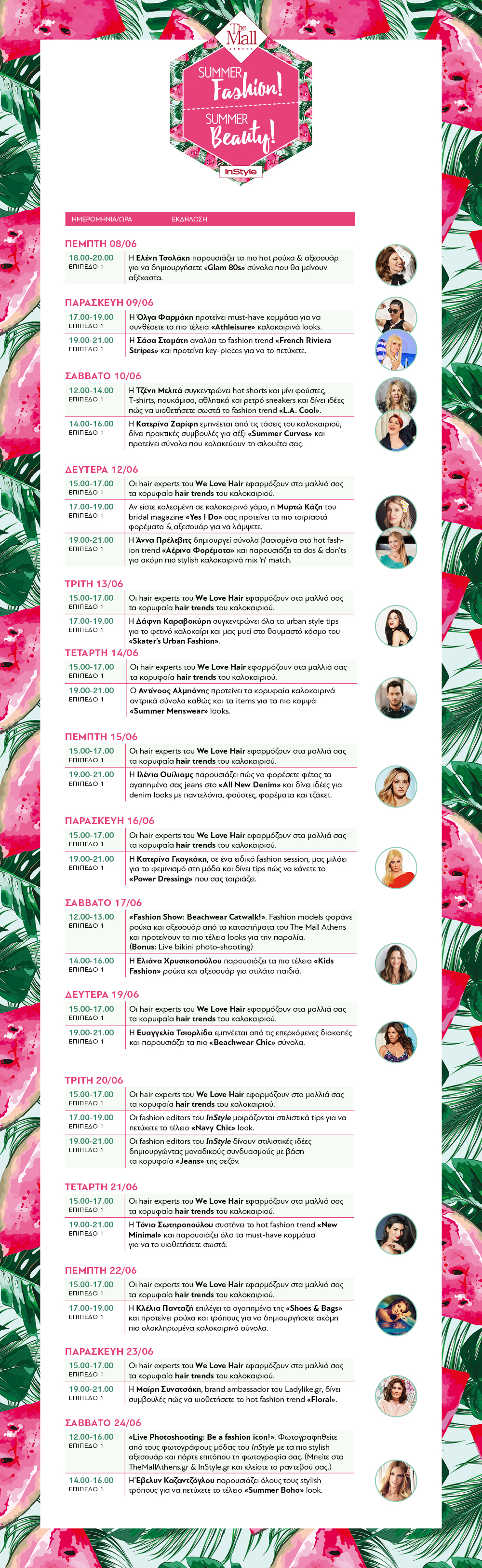 Summer is finally here και το InStyle το γιορτάζει για δύο ολόκληρες εβδομάδες στο The Mall Athens με το μεγαλύτερο και πιο stylish event της σεζόν. Από τις 8 Ιουνίου μέχρι και τις 24 Ιουνίου σας περιμένουμε στον πρώτο όροφο στο ειδικά διαμορφωμένο stage για να ζήσετε μαζί μας όλα τα special events του Summer Fashion! Summer Beauty! @ The Mall Athens by InStyle. Οι fashion editors του InStyle έχουν ετοιμάσει ειδικά sessions με το πώς μπορείτε να τολμήσετε τα πιο hot summer trends ώστε να τα ενσωματώσετε σωστά στα look σας. Μάθετε εύκολα και απλά πώς να παίξετε με το στιλ σας και να ενσωματώσετε σε αυτό όλα τα τελευταία trends της μόδας. Eνημερωθείτε για ό,τι είναι πραγματικά hot αυτή τη στιγμή σε ρούχα, αξεσουάρ και παπούτσια. Κάθε ημέρα μία διαφορετική celebrity αναλαμβάνει το ρόλο του fashion editor με τη βοήθεια των experts του InStyle, και σας μιλάει για ένα hot trend που αγαπά φέτος το καλοκαίρι. Την Παρασκευή στις 9 Ιουνίου από τις 5 το απόγευμα μέχρι τις 7 στο stage μας θα βρεθεί η fashion blogger και μοντέλο Όλγα Φαρμάκη για να μας πει τι πρέπει να φορέσουμε το φετινό καλοκαίρι ώστε να πετύχουμε το τέλειο athleisure look. Ελάτε στο stage του Summer Fashion! Summer Beauty! @ The Mall Athens by InStyle στον πρώτο όροφο να δείτε από κοντά την αγαπημένη σας celebrity και να μάθετε τα πάντα για το καλοκαιρινό trend. summer fashion summer beauty homepage 600 X 600 Αμέσως μετά στις 7 το απόγευμα μέχρι και τις 9 το βράδυ σειρά παίρνει η Σάσα Σταμάτη που μας προτείνει τολμηρά ριγέ looks για το φετινό καλοκαίρι γιατί τα stripes είναι πάντα in. Ελάτε στο stage του Summer Fashion! Summer Beauty! @ The Mall Athens by InStyle στον πρώτο όροφο να δείτε από κοντά την αγαπημένη σας celebrity και να μάθετε τα πάντα για το καλοκαιρινό trend. summer fashion summer beauty homepage 600 X 600 Επίσης διαγωνισμοί με πολλά fashion και beauty δώρα από τα καταστήματα του The Mall Athens καθημερινά στο stage του InStyle, We Love Hair sessions για να ανανεώσετε τα μαλλιά σας, «Live Photoshooting: Be a Fashion Icon!» όπου θα ποζάρετε για τους φωτογράφους μόδας του InStyle και θα παίρνετε μαζί σας τυπωμένη τη φωτογραφία σας αλλά και μια πασαρέλα έκπληξη στους διαδρόμους του The Mall Athens σας περιμένουν στο μεγάλο καλοκαιρινό event μόδας και ομορφιάς Summer Fashion! Summer Beauty! @ The Mall Athens by InStyle που δεν πρέπει να χάσετε. Ακολουθήστε τα hashtags: #summerfashionsummerbeauty #themallathens #instylegreece για περισσότερα updates στα social media Δείτε όλο το πρόγραμμα του Summer Fashion! Summer Beauty! @ The Mall Athens by InStyle εδώ PROGRAMME_INSTYLEGR_2    ]]>