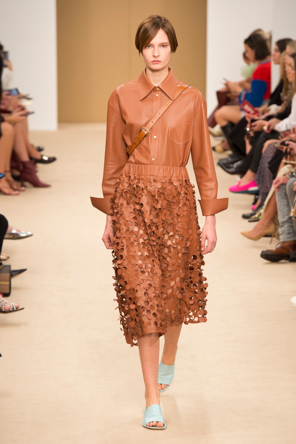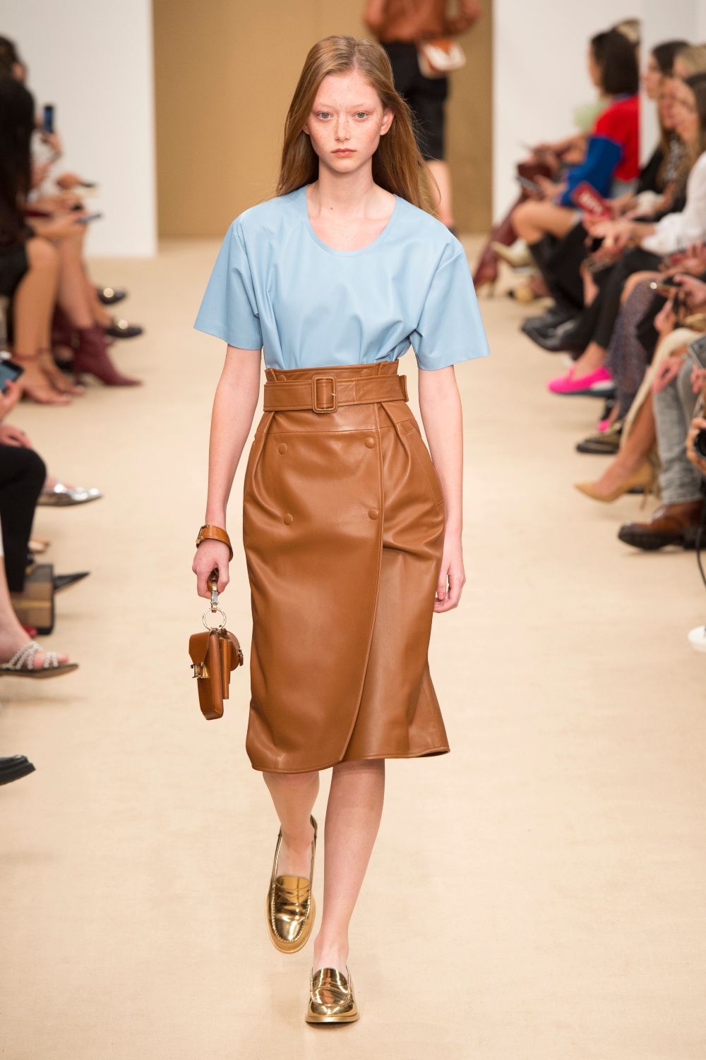 Ο οίκος Tod’s λοιπόν μας προτείνει να δημιουργήσουμε ένα κομψό office look, συνδυάζοντας μία leather φούστα με ένα πουκάμισο σε pastel απόχρωση- ιδανικά σε baby blue- ή με ένα εξίσου leather πουκάμισο. Ολοκληρώστε την εμφάνιση σας με ένα ζευγάρι κλασικές μαύρες γόβες και το αποτέλεσμα θα είναι εντυπωσιακό.