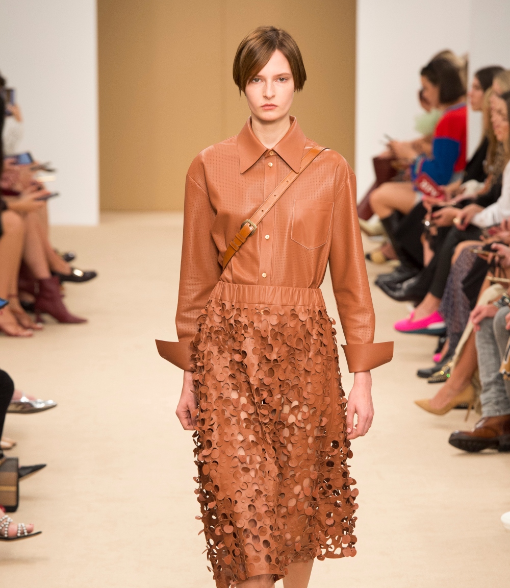 Ο οίκος Tod’s λοιπόν μας προτείνει να δημιουργήσουμε ένα κομψό office look, συνδυάζοντας μία leather φούστα με ένα πουκάμισο σε pastel απόχρωση- ιδανικά σε baby blue- ή με ένα εξίσου leather πουκάμισο. Ολοκληρώστε την εμφάνιση σας με ένα ζευγάρι κλασικές μαύρες γόβες και το αποτέλεσμα θα είναι εντυπωσιακό.