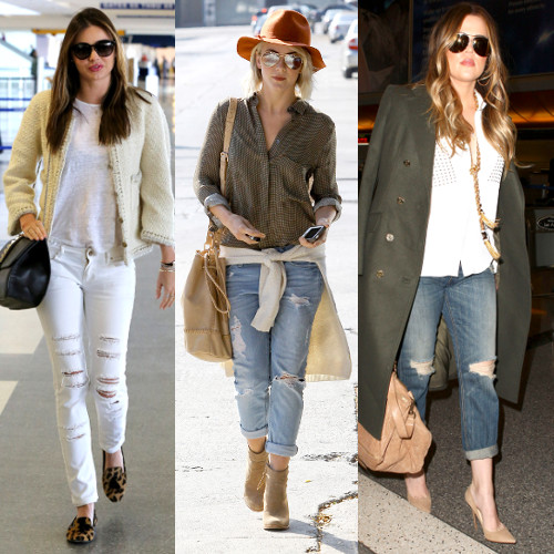 -Συνδυάστε τα με ένα πιο πιο καλό σακάκι, τύπου μπουκλέ, ένα μονόχρωμο μπλουζάκι κι ένα ζευγάρι flats (slippers ή slip-ons) ακολουθώντας το παράδειγμα της Miranda Kerr.