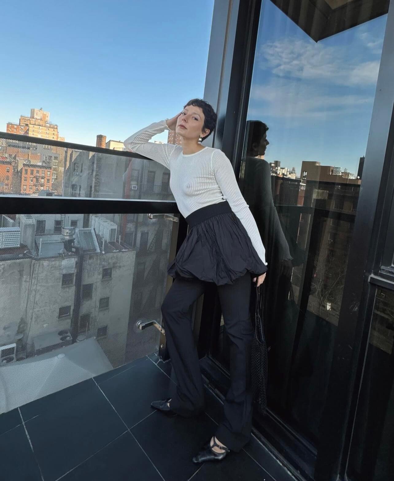 Με το layering να είναι μία από τις πιο hot τάσεις της εποχής, η επιλογή να φορέσετε τη balloon φούστα πάνω από παντελόνι «χτίζει» ένα πρωτοποριακό και εκκεντρικό σύνολο που αποπνέει αυτοπεποίθηση και άποψη.