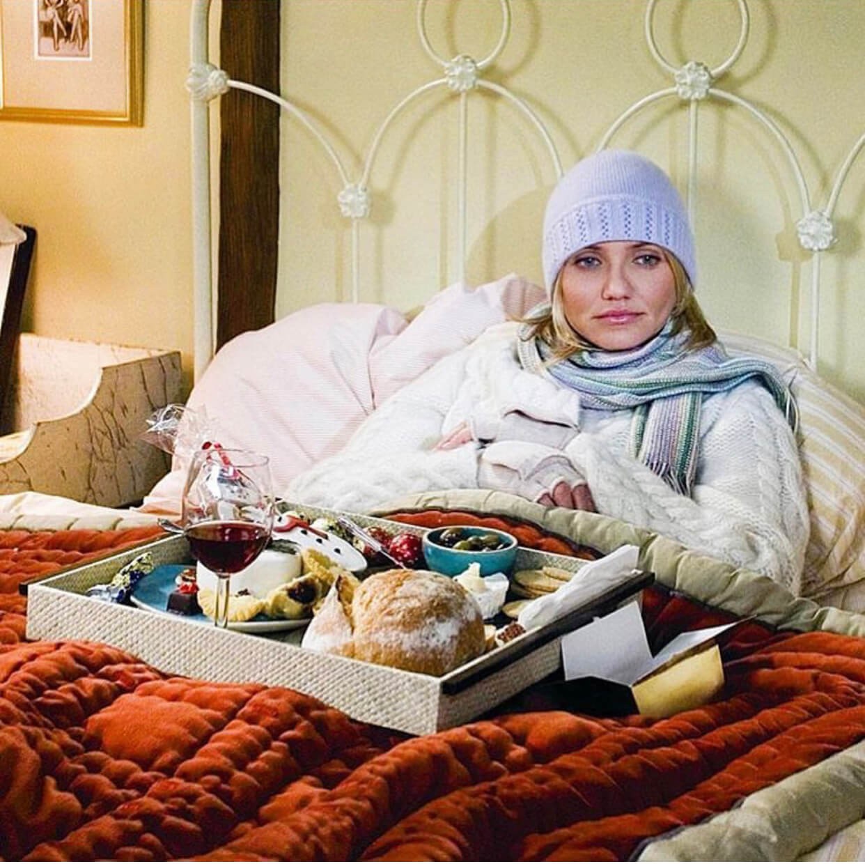 Η Diaz στην ταινία “The Holiday” φοράει ζεστά παλτό, μαλακά σκουφάκια και άνετες μπότες -ιδανικές τόσο για έξω, όσο και για μέσα στο σπίτι.
