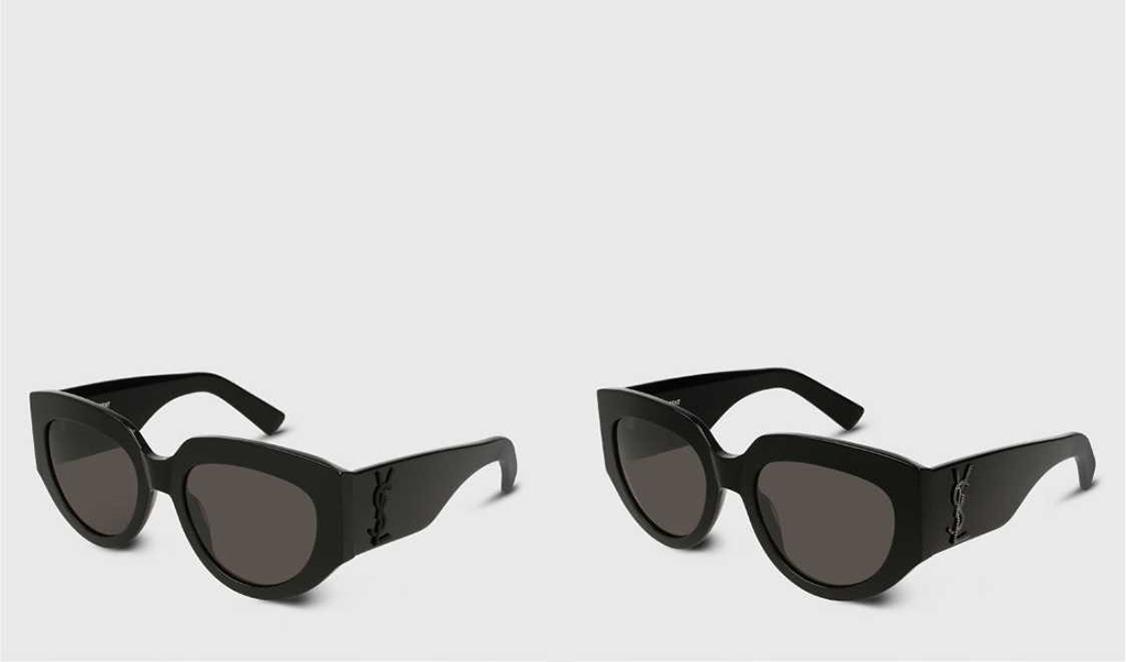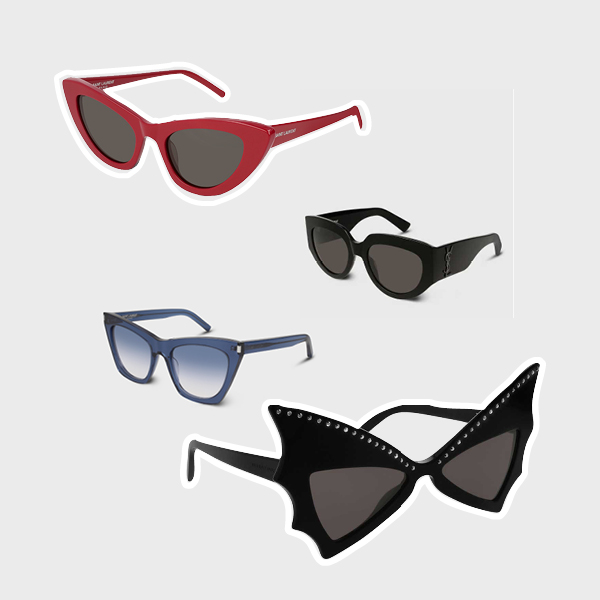 Tο μικρά «cat-eye»γυαλιά ηλίου με τις έντονες γωνίες αποτελούν το νέο statement στον κόσμο της μόδας. Η συλλογή New Feminity και τα κομμάτια Lily, Kate και Grace είναι κατασκευασμένα στην Ιταλία και εμπνευσμένα από τον κήπο Majorelle του σπιτιού του κύριου Saint Laurent στο Μαρακές. Με σκελετούς σε λαμπερά χρώματα και με το λογότυπο του Saint Laurent χαραγμένο με laser και στους δύο βραχίονες, είναι εξαιρετικά εντυπωσιακά και θηλυκά ενώ το μοντέλο Grace είναι διακοσμημένο με χίλια στρασάκια. Η συλλογή περιλαμβάνει και σκελετούς οράσεως.