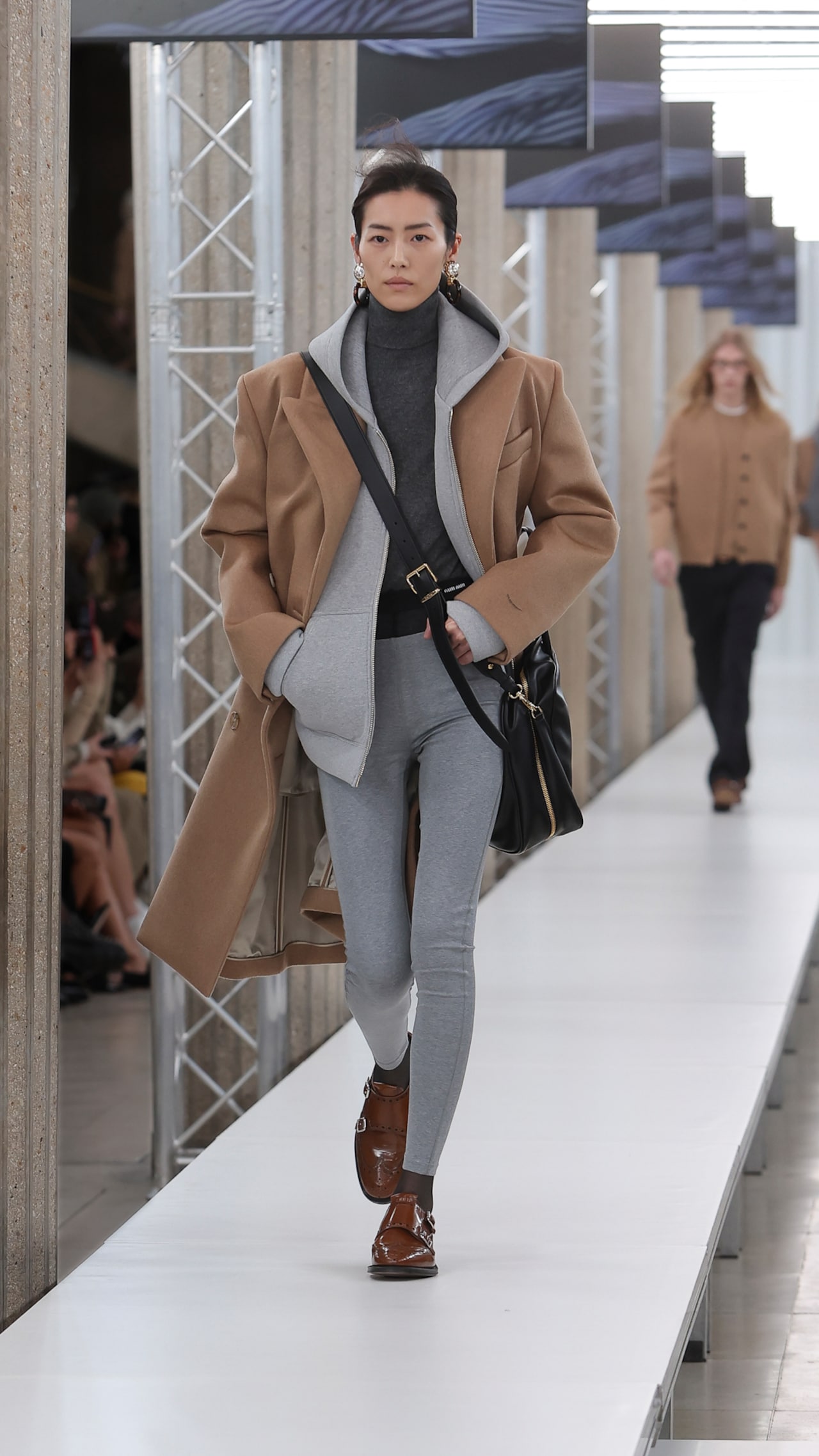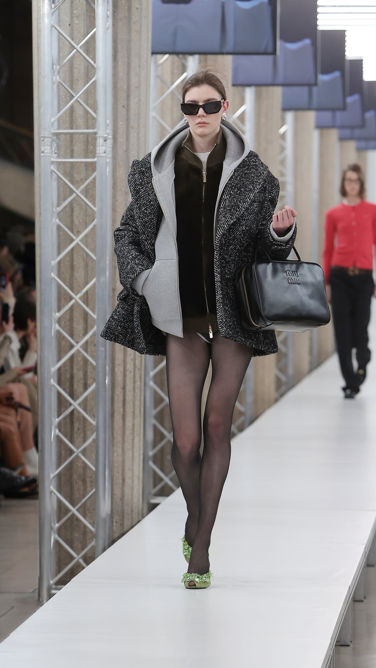 Στο runway μίνιμαλ γκρι φούτερ φορέθηκαν ως μίνι φορέματα, με λεπτό καλσόν ή γυμνά πόδια, μέσα από oversized blazers, αλλά και σε συνδυασμό με κολάν και sneakers!