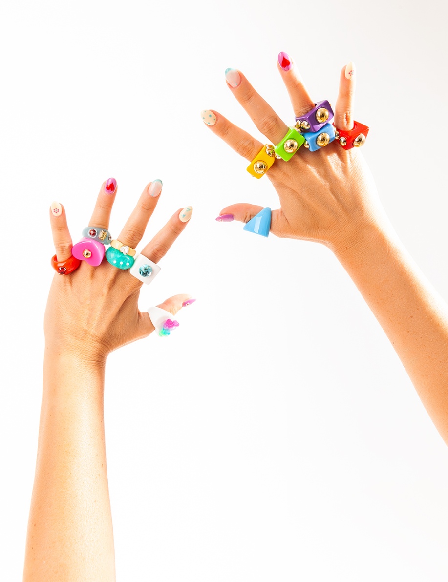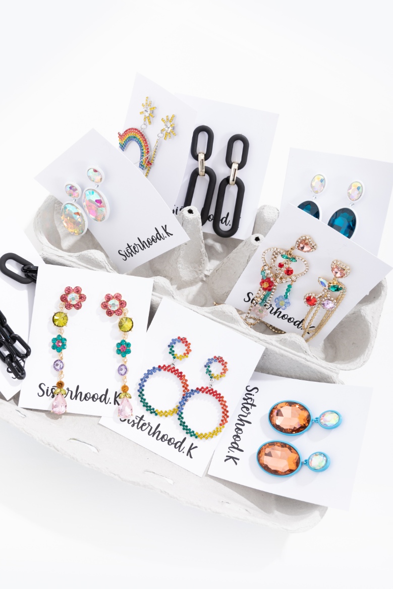 Τα ξεχωριστά pieces τους, μας φτιάχνουν κατευθείαν τη διάθεση μόλις τα βλέπουμε. Πολύχρωμα δαχτυλίδια, ψάθινες τσάντες, oversized μπλουζάκια με το custom made Sisterhood.K logo και hair clips πρωταγωνιστούν στις collections τους. Την trendy και παιχνιδιάρικη διάθεση, συμπληρώνουν τα “chunky rings”, τα οποία είναι το πιο hot trend του καλοκαιριού.