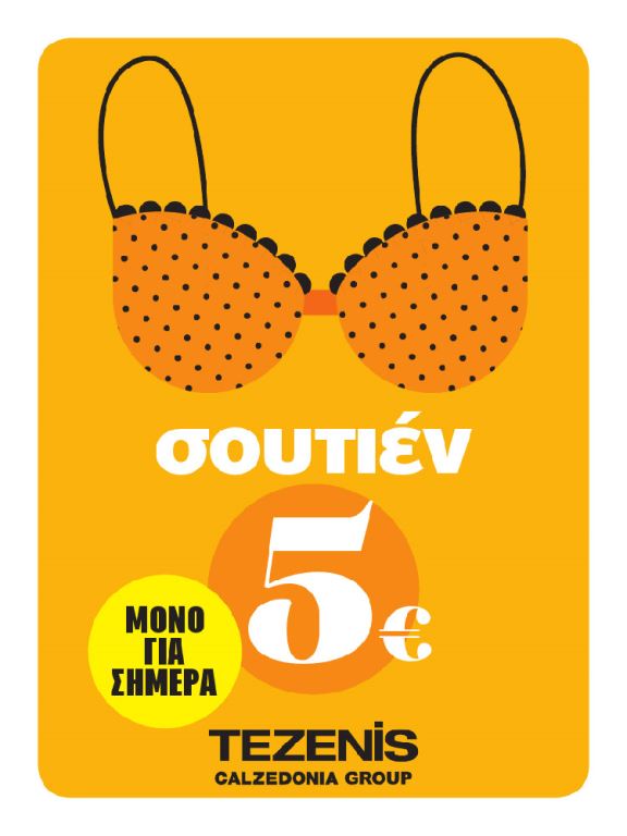 Είναι αλήθεια! Για μια ημέρα μόνο, όποιο σουτιέν κι αν διαλέξετε από την τελευταία κολεξιόν του αγαπημένου ελληνικού brand Tezenis γίνεται δικό σας μόνο με 5 ευρώ.