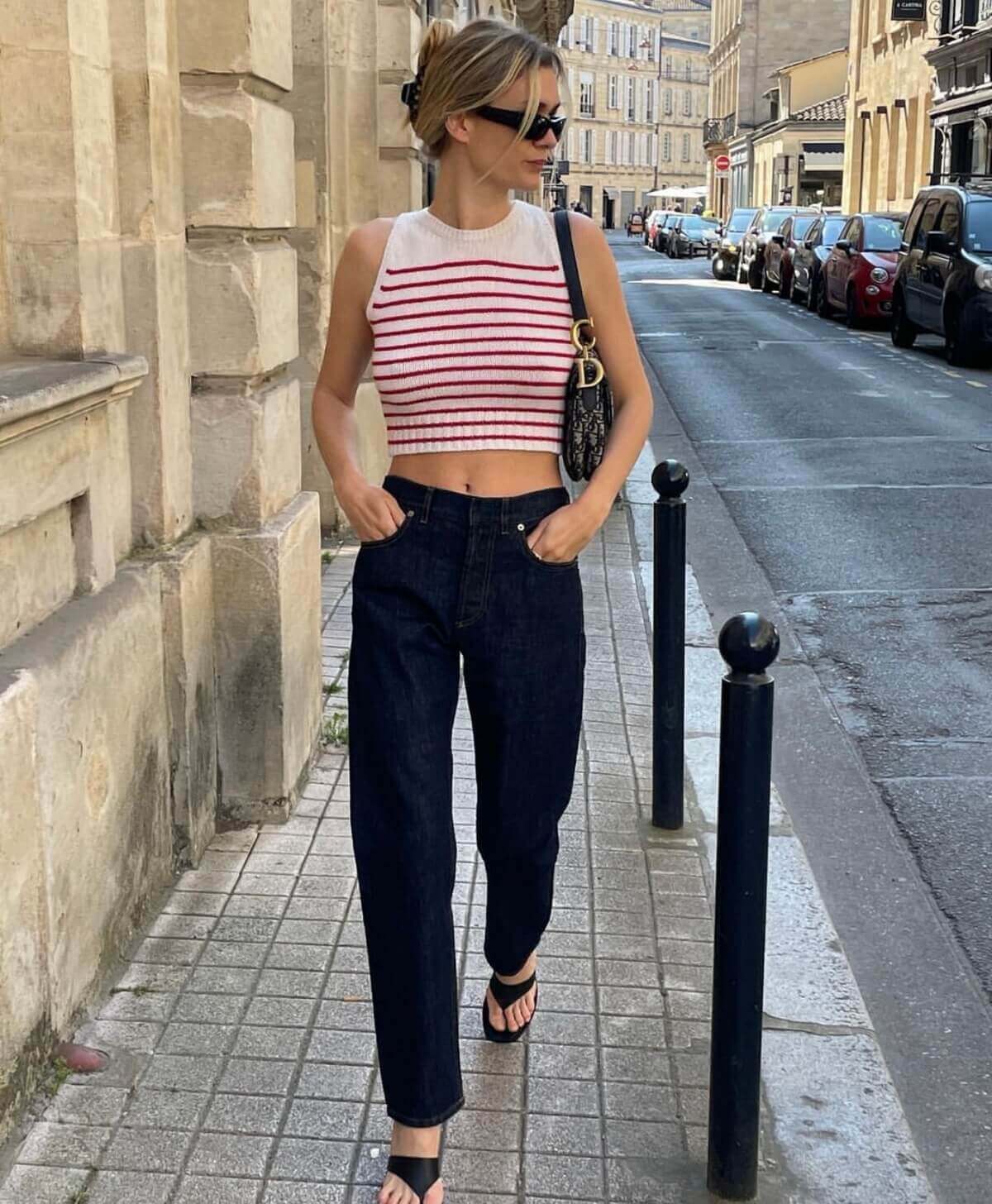 Η κόκκινη μαρινιέρα: μια φινετσάτη εναλλακτική για όσες λατρεύουν το χρώμα. Οι κόκκινες ρίγες θεωρούνται εξίσου κομψές και ταιριάζουν με όλα τα ρούχα που θα ταίριαζε και μια κλασική μαρινιέρα, βάζοντας μια πιο θηλυκή και παιχνιδιάρικη νότα στο σύνολο.