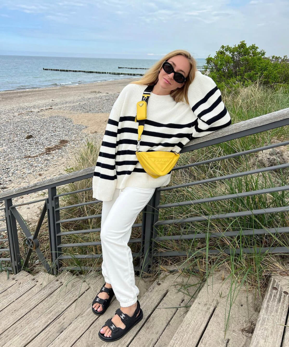 Το oversized πλεκτό πουλόβερ: το οποίο ίσως και να μοιάζει χειμωνιάτικο, αλλά σκεφτείτε κι εκείνες τις κρύες βροχερές νύχτες του καλοκαιριού που το μόνο που χρειάζεστε είναι ένα στιλάτο και ζεστό πανωφόρι για να συνδυάσετε με το τζιν σορτς σας. Η συγκεκριμένη μαρινιέρα είναι hot, ιδανική για τα καλοκαιρινά μπουρίνια και την χρειάζεστε ASAP!